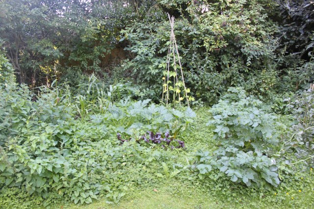 Buried in there somewhere are beetroot, swiss chard, courgettes, sweetcorn, French green beans, helda beans, peas, potatoes and broad beans.  And loads and loads of weeds.
