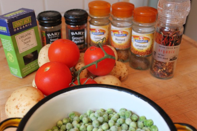 I made the potato and pea curry which meant I could use up some of the potatoes in the garden. And I often prefer potato dishes with curry to the more conventional rice.