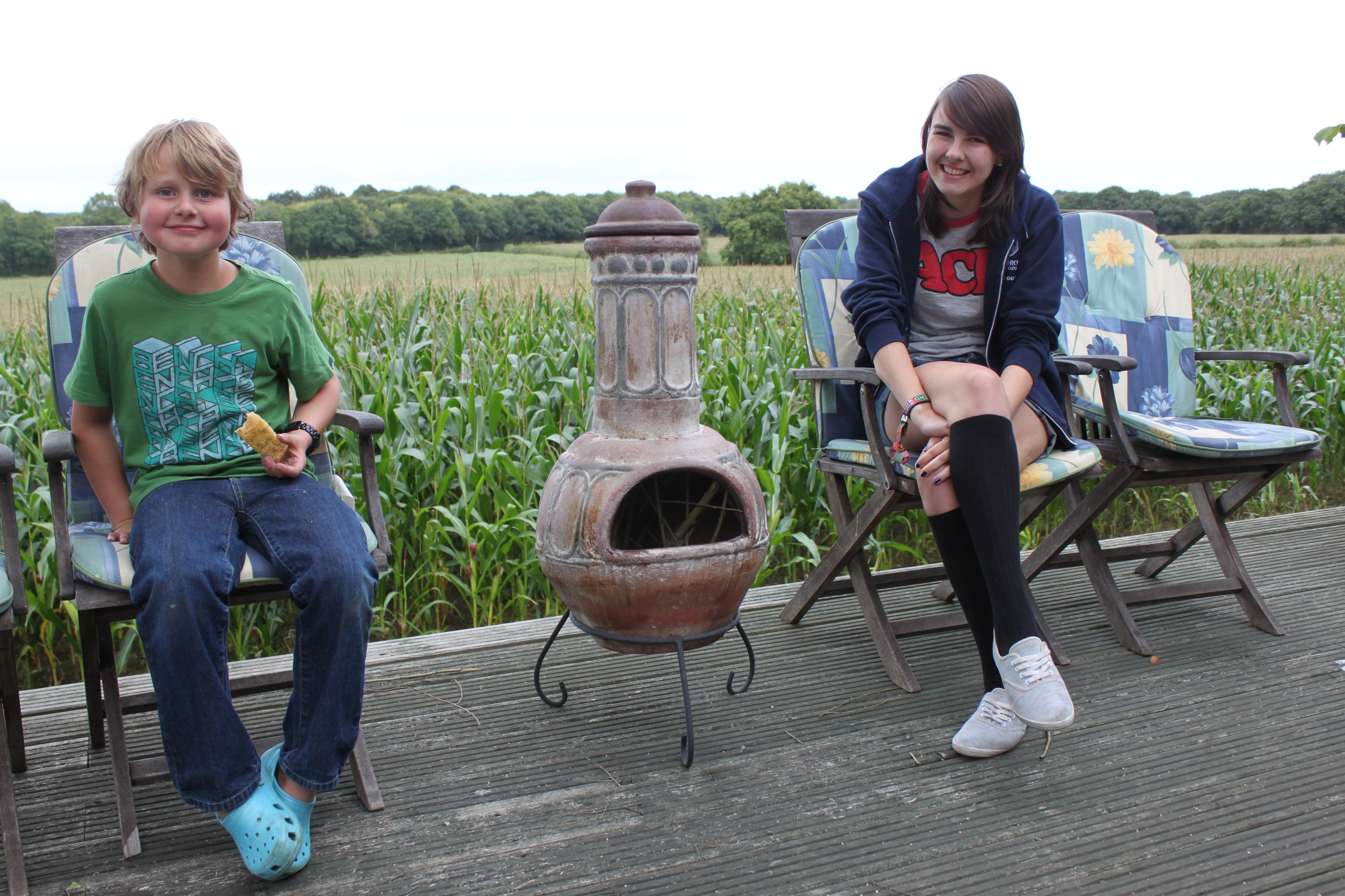 And Harvey and Lucy, sitting on the edge of the deck, overlooking the corn field. I was so tempted to clamber down and try that sweetcorn.