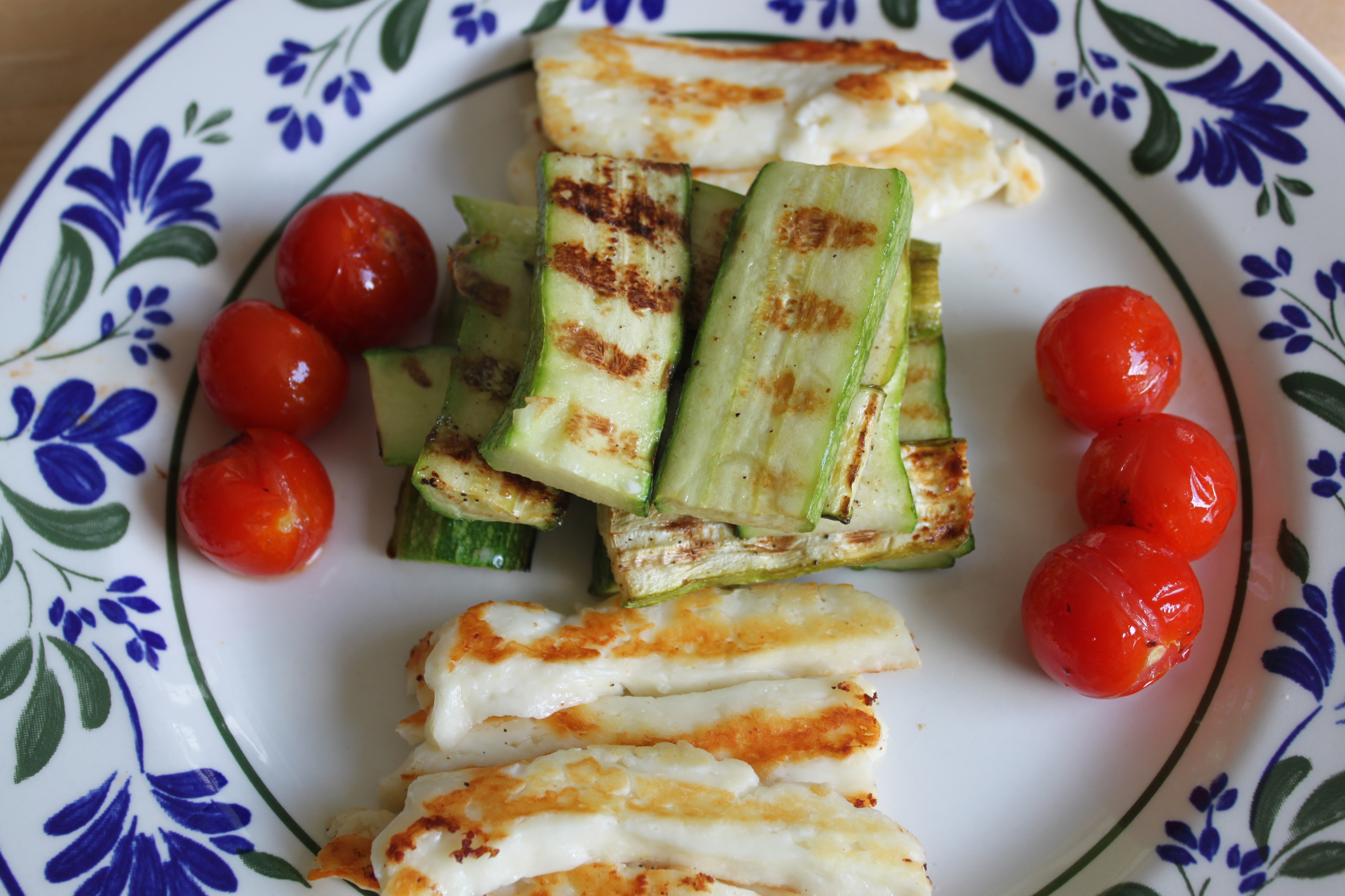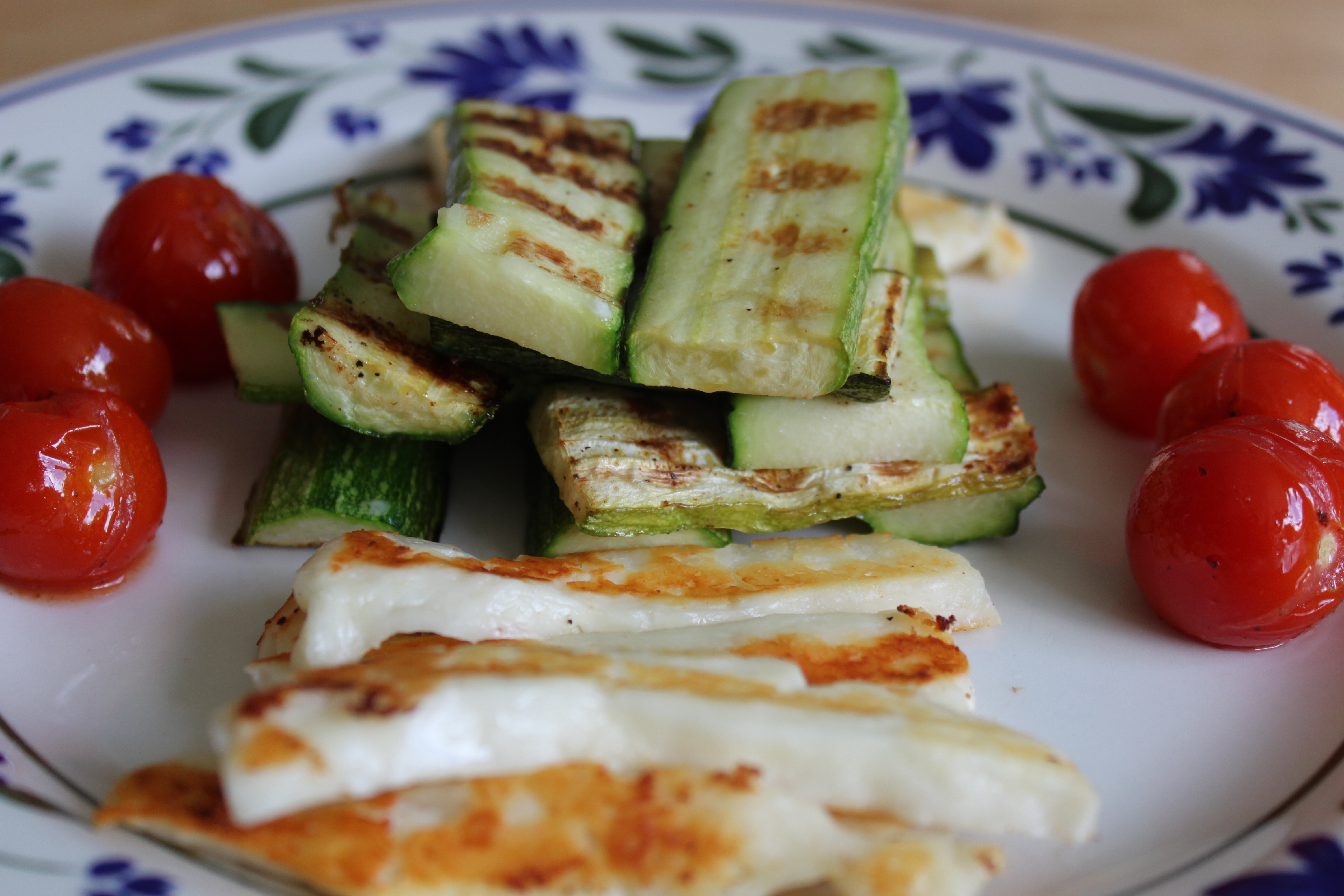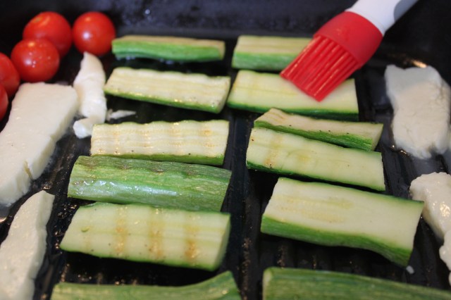 This was so easy. I sliced the courgettes lenthwise. Washed the cherry tomatoes. Sliced the Halloumi.