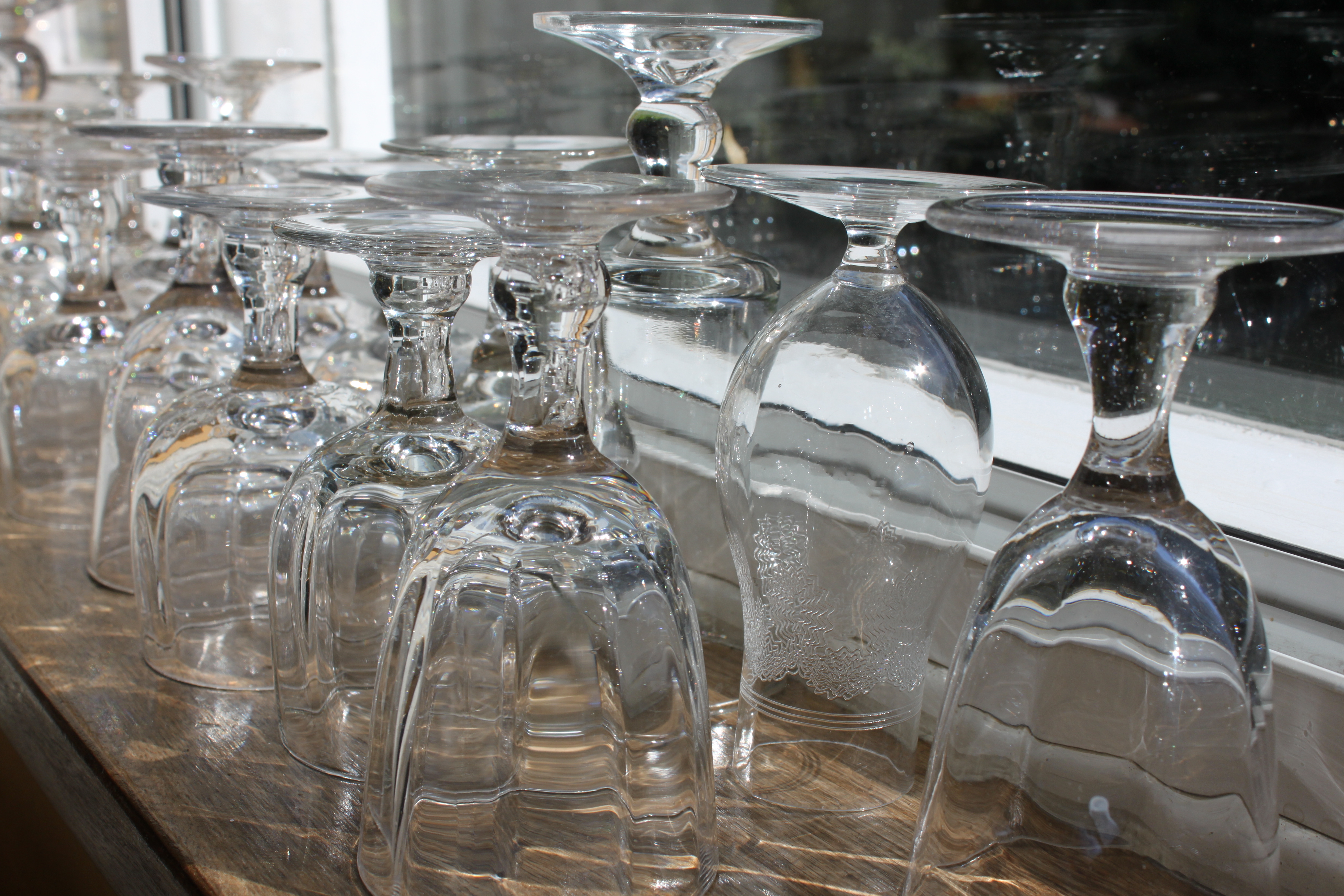 The glassware looked amazing, sparkling in the sunshine. This is some of the 32 liquer glasses I washed! It was a very pleasurable task.