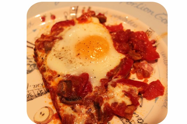 I went to be weighed and Lara cooked dinner. It was similar to a pepperonata but with more tomatoes in it. She slowly fried onions, garlic and red pepper, added tinned chopped tomatoes, salt and pepper. When it was nearly ready she put it in to a rectangular baking dish, cracked 4 eggs on to it and put it in the oven for about 10 minutes until the eggs had set. It was lovely but not substantial enough, even with the leftover Sushi.