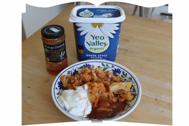 It was very easy to make the curry and it seems very nutritious to me as it is a light and low fat dish, full of cauliflower and chickpeas, funnily enough.  The spicing is well rounded and the flavour gradually builds as you eat it.  We ate it as it was, without any rice or other accompaniments.  Except I added 50g Greek natural yogurt (2 WW points) and 33 g mango chutney (2 WW points).  I nearly always add natural yogurt to a tomato based curry as I like the sharp creaminess of the yogurt against the sweet acidity of the tomato. If I had eaten half the curry, which I was planning to do, it would have been 14 WW points for the whole meal (including yogurt and chutney points).  I actually ate less but left that many points on the tracker anyway.