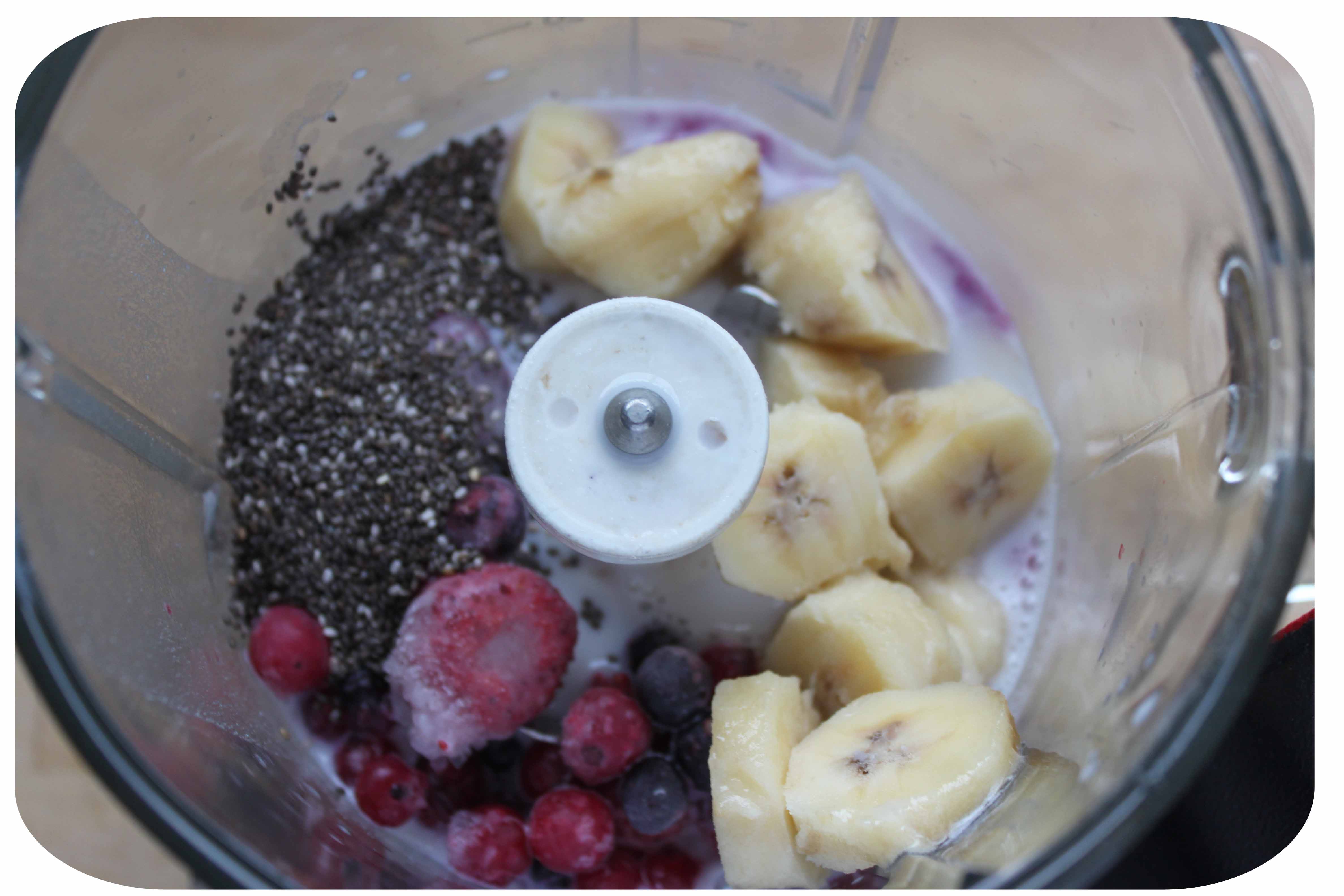 My smoothie was made from frozen mixed berries, a banana, 1 tbsp Chia seeds (2 points) and 200ml almond milk (2 points).