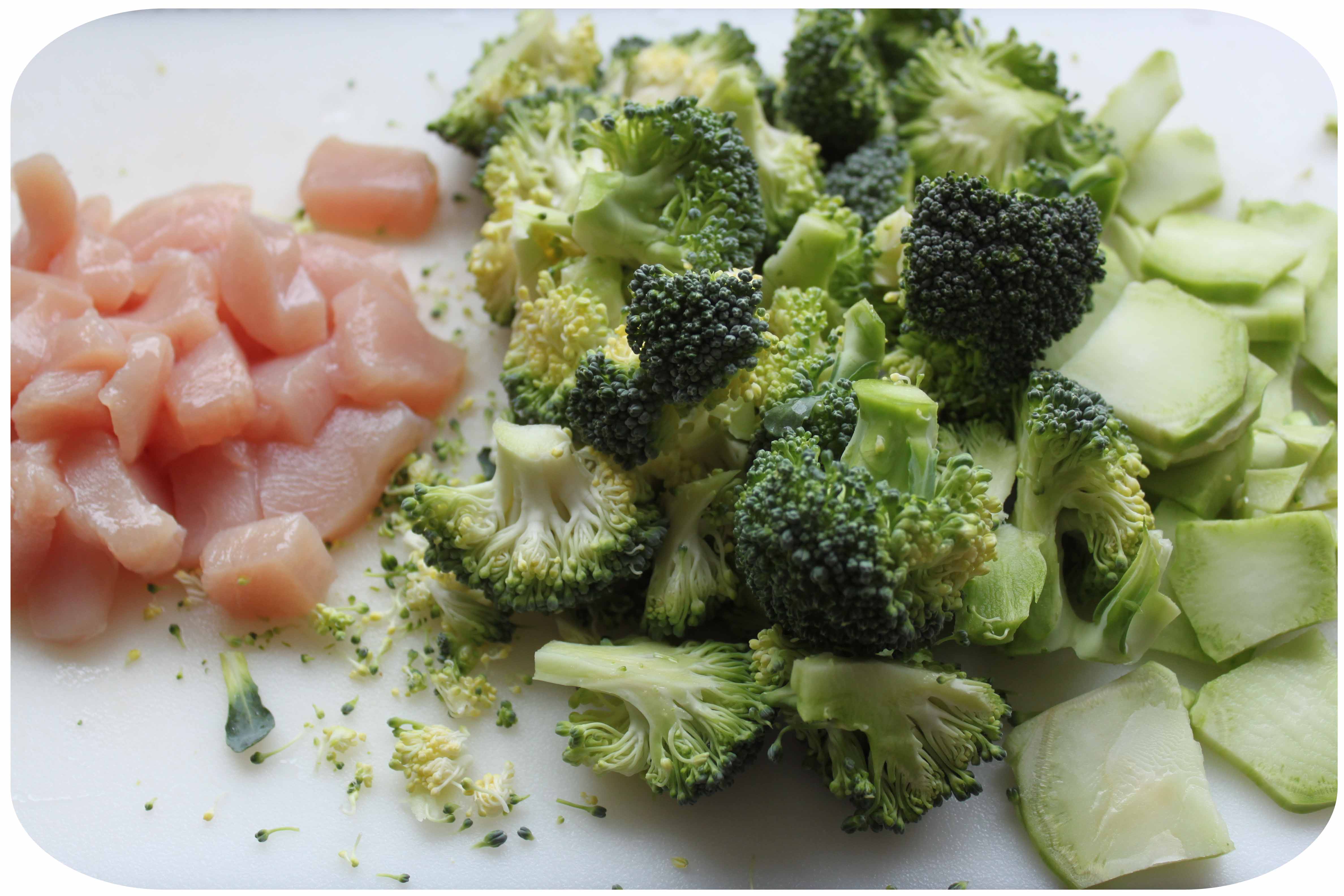 - Chop the broccoli and chicken. I used the broccoli stalks too.