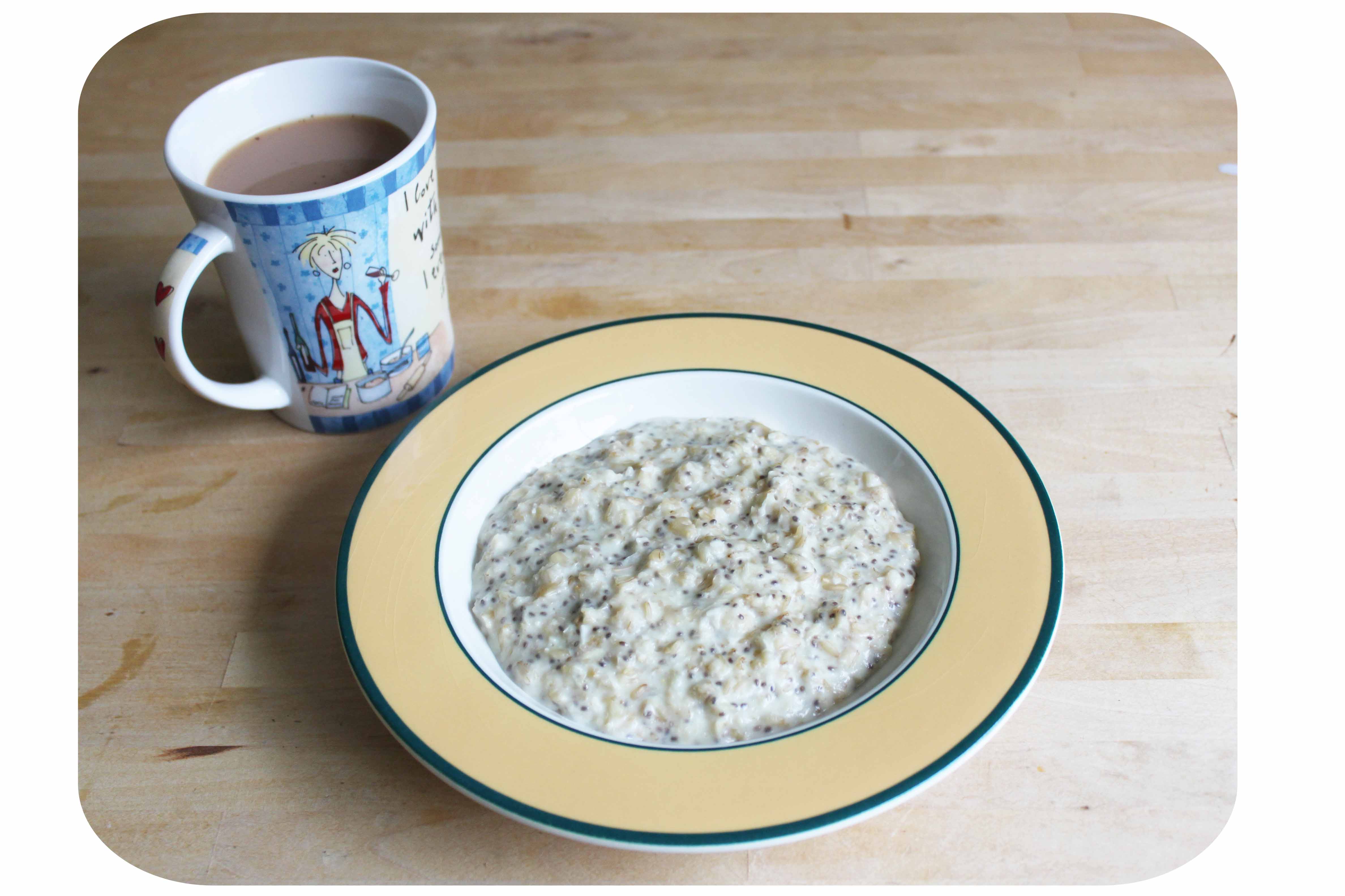 We had a busy morning ahead as Harvey had a swimming lesson and was then playing in a football match for the school. I made porridge as it is so good at releasing energy slowly. I looked at the half empty can of pumpkin and then looked away. Not today. I added Chia seeds for protein and coconut for sweetening to make a change from a banana. My bowl had 50 g Jumbo oats, 140 ml soya milk, 1/2 tbsp Chia seeds, 1/2 tbsp coconut. It was good with coconut in it.