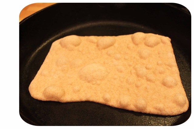 It was cut in to 8 pieces; 4 were rolled in to bread roll shapes and set aside to prove again and the other 4 were rolled flat to be made in to flatbreads. Each piece of flatbread was cooked on a hot frying pan.
