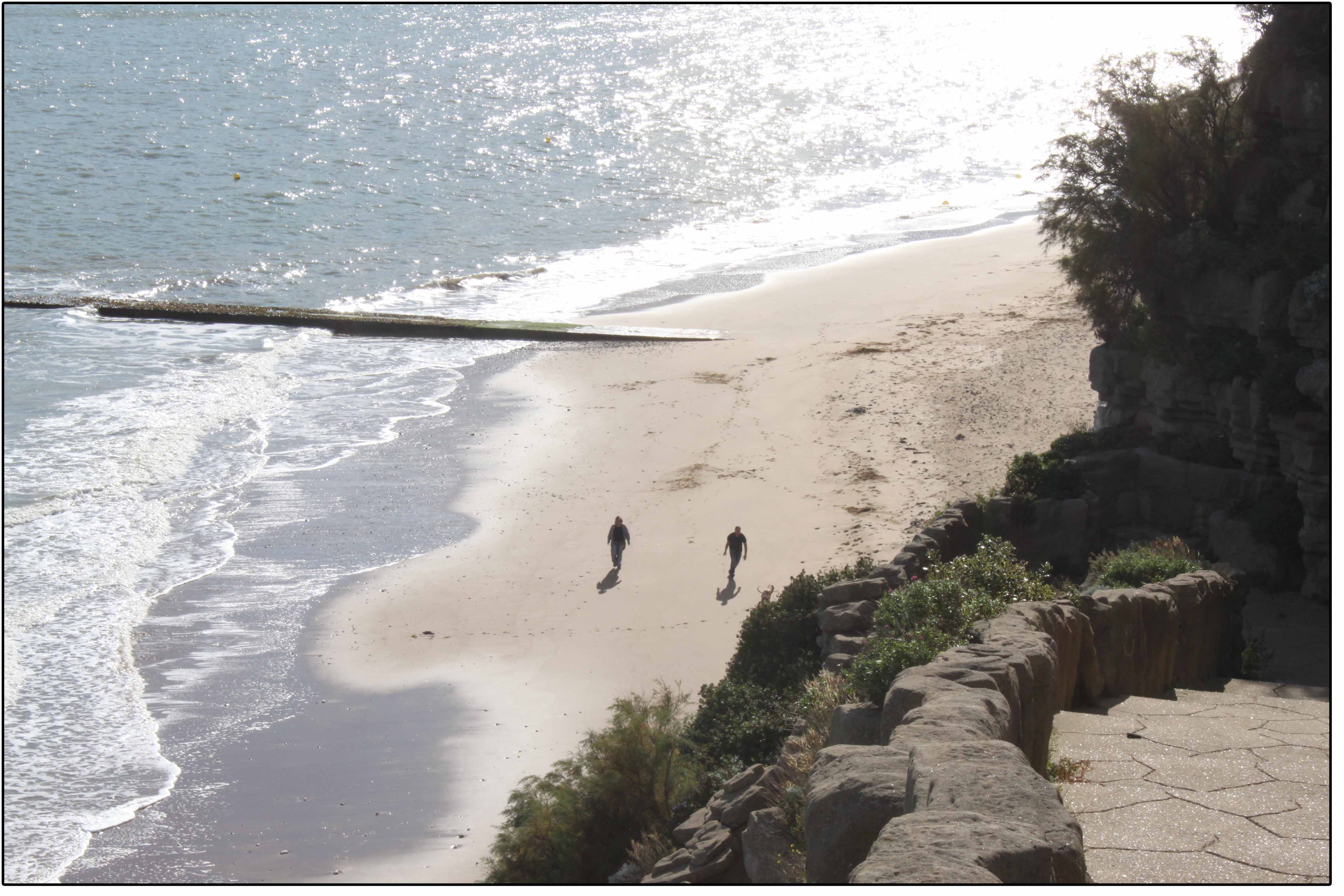 Walking along the cliffs there are several places to get down to beach level; by lift, steps or walkway. Just before the park is a walkway down to the beach – more examples of Pulhamite rock.