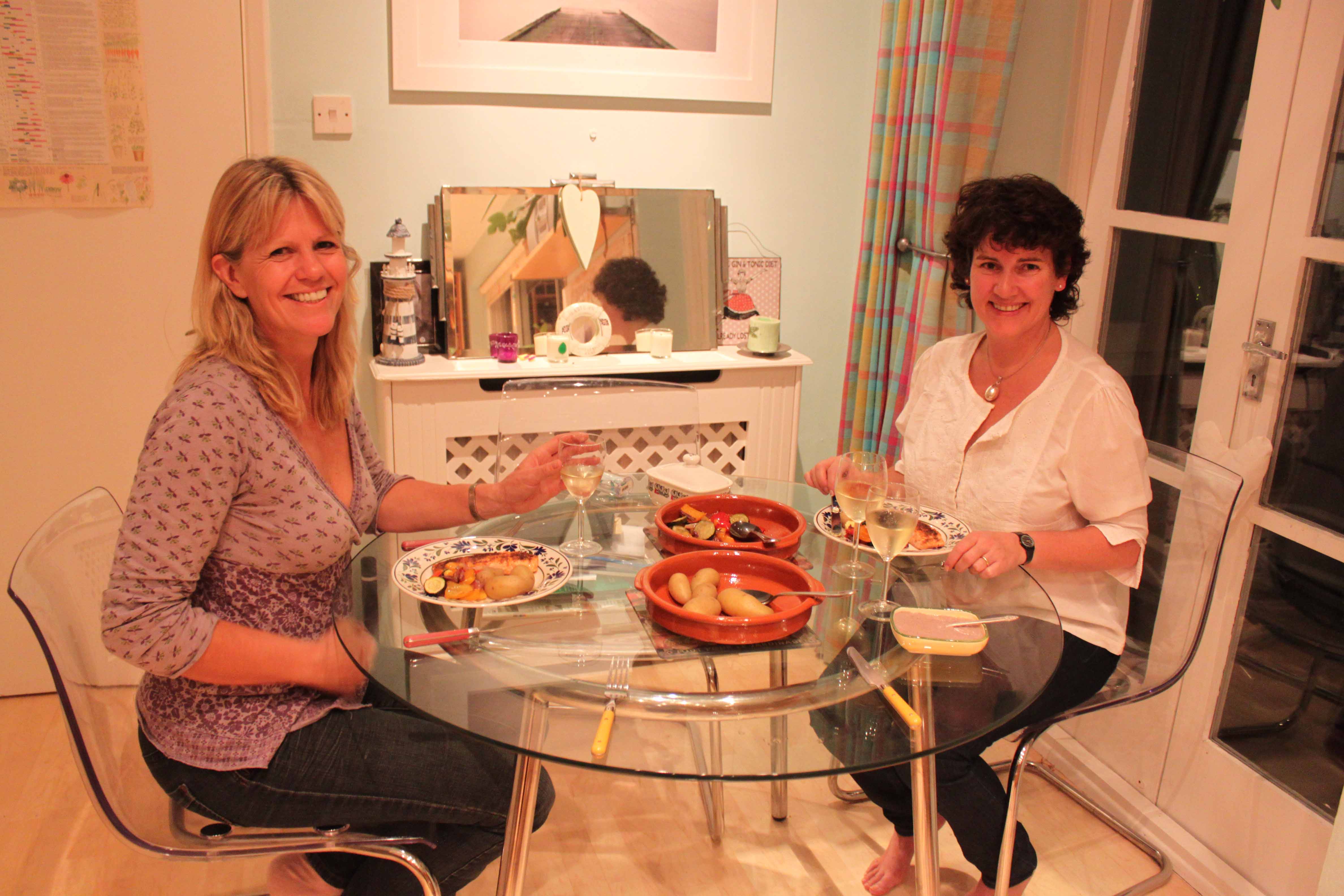 For supper I had 2 lovely visitors; Marion and Sarah. They arrived with fizz, red wine and chocolates.