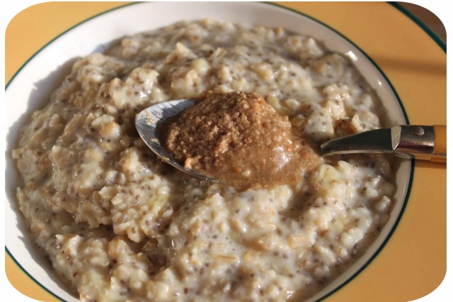 I really like this nut butter and it seems to go with everything.  Hazlenuts are a source of healthy Omega 3 and Omega 6 oils, protein and several minerals including magnesium and vitamins including Vitamin E and K.  So eating Oats and hazelnuts, with some milk for calcium and fruit for vitamin C and you have a really healthy start to the day 🙂