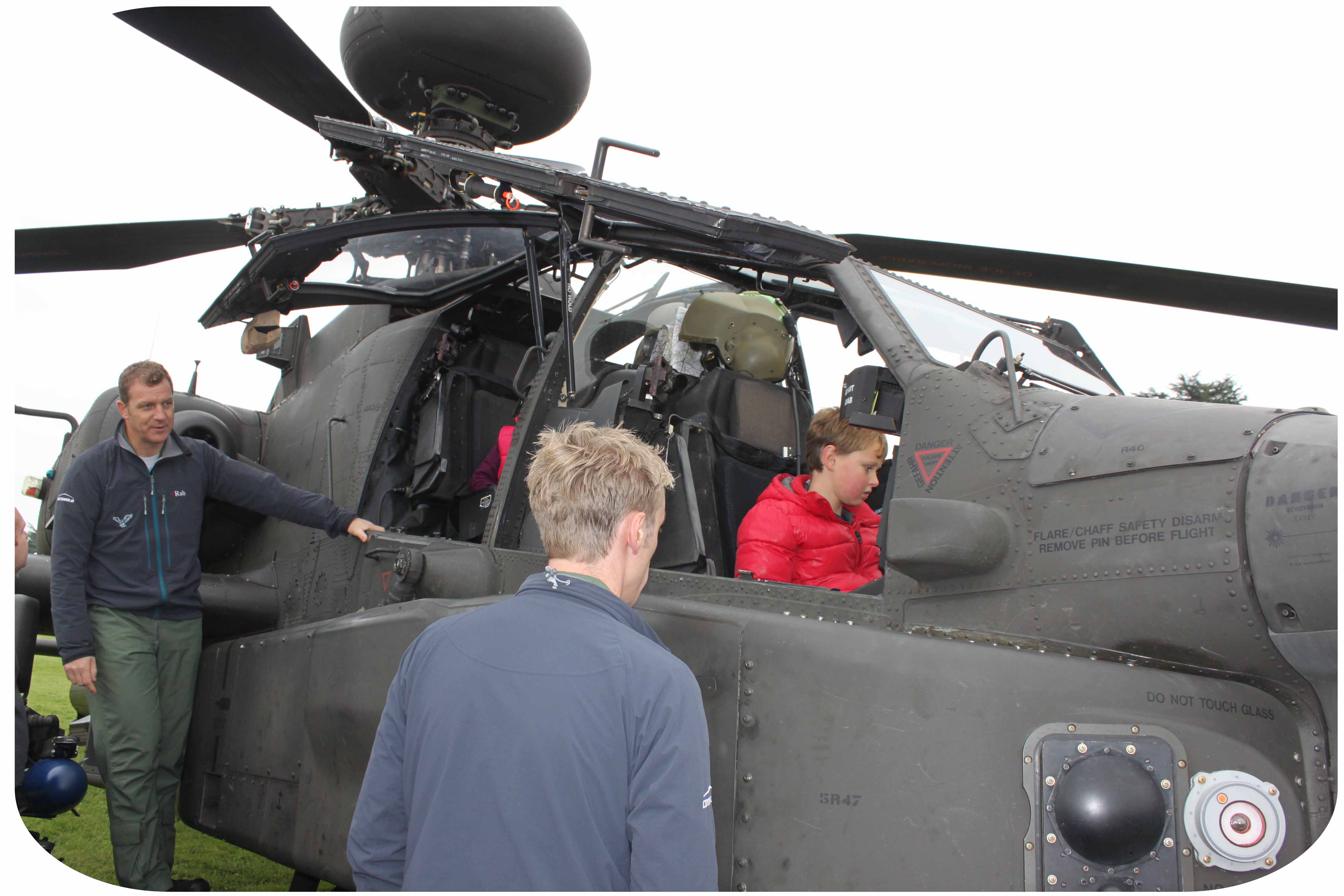We had to wait until 11:30 for the house to open (yes, gasp, we did go inside 🙂 ) so Harvey had the opportunity to sit in an Apache helicopter,