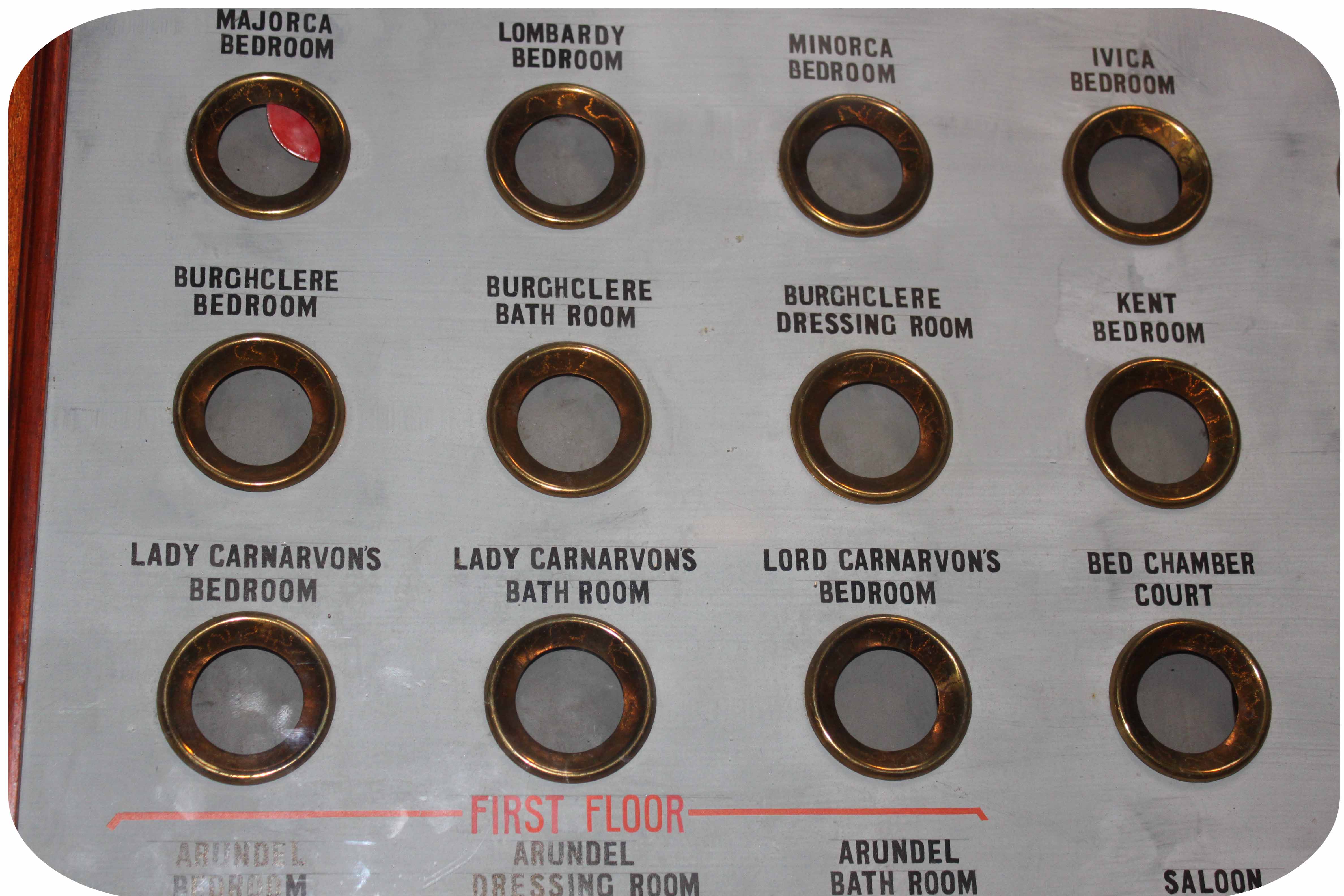 In the basement is an exhibition of Egyptian artefacts and replicas as it was the Earl of Carnarvon (the current Earl’s Grandfather I believe) who discovered Tutankhamen’s tomb in 1922.  On the way to the tea rooms is the bell board for all the rooms in the ‘upstairs’ of the house.  So when the servants heard the bell ring for attention, they knew which room to rush off to.