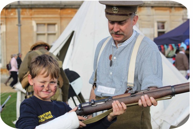 We went to Highclere Castle which is the setting for ITV’s period drama Downton Abbey.  The Earl and Countess were hosting a fund raising day for the armed forces charities so it was a perfect day out for the three of us; history and Downton stuff for me, armed forces, guns and blood (only fake, don’t panic) for Harvey and vintage cars and planes for James.