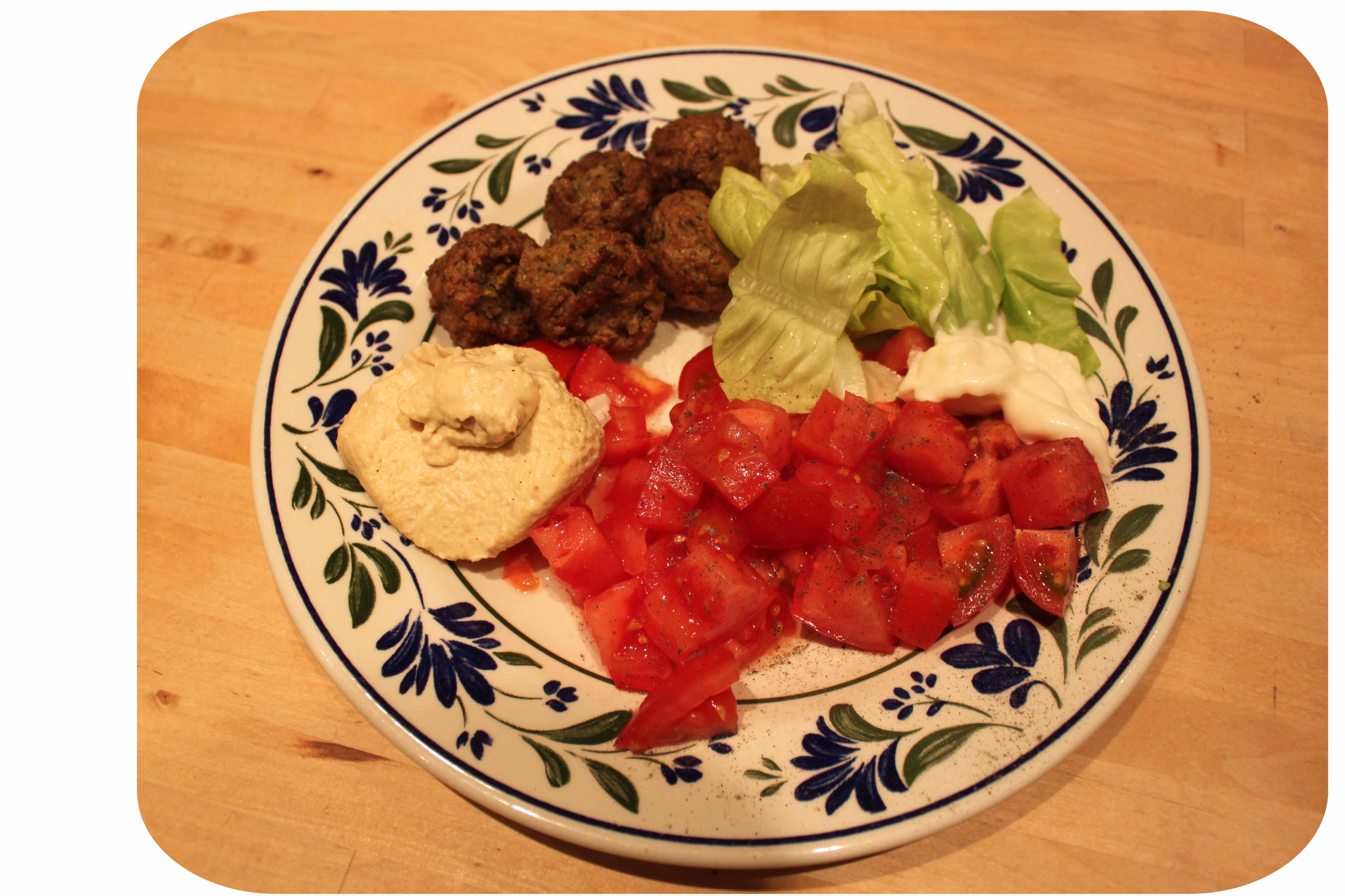Back at home we had a quick and simple supper; falafel, humous, lettuce and some wonderfully juicy tomatoes with a small blob of mayonnaise.