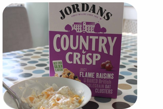 Fruit, yogurt and cereal for breakfast today.  Greek yogurt, mango, peach and Jordan’s Country Crisp with raisins for me.