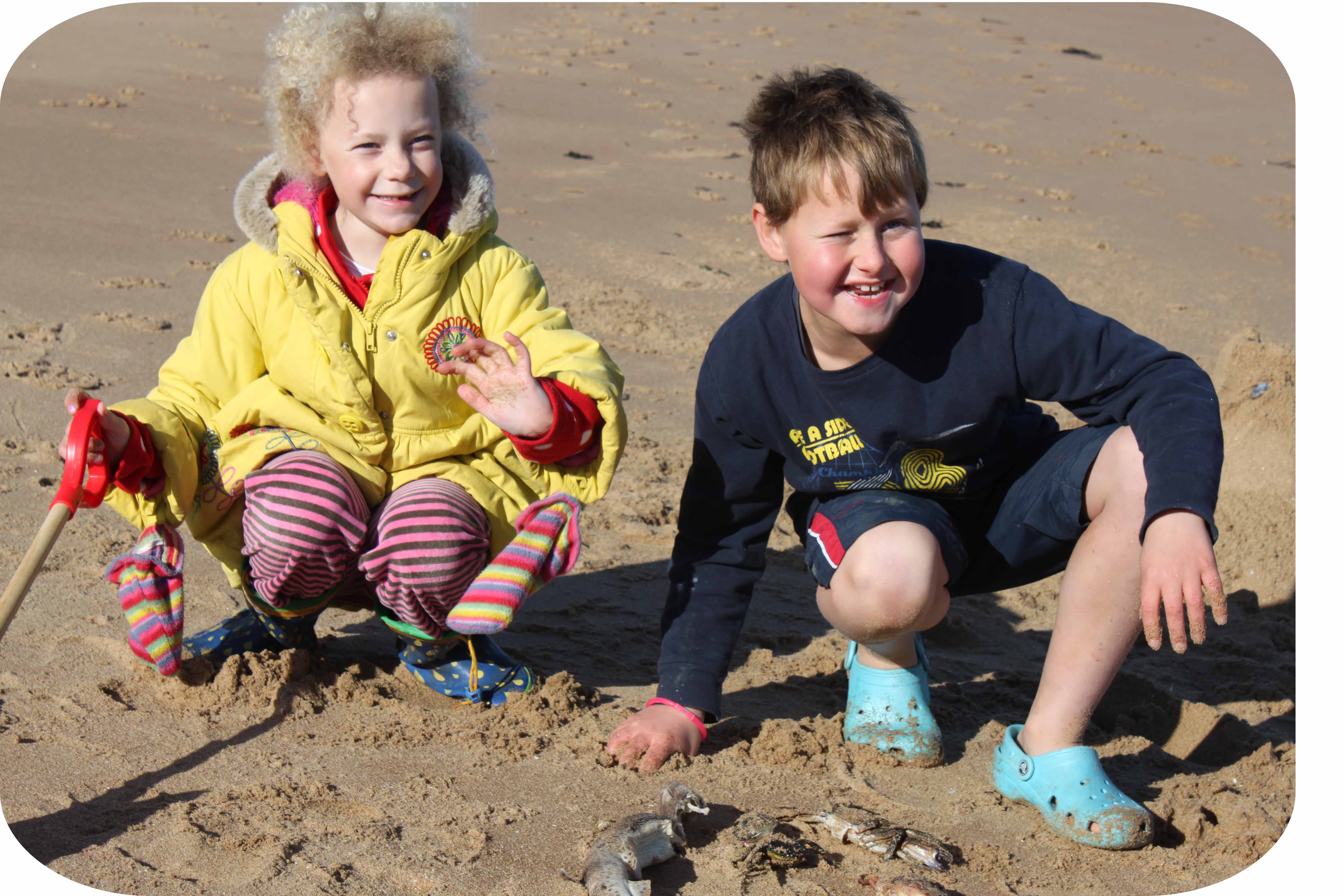 Beach baby, beach baby, there on the sand.  Oh yes, another fantastic day on the beach.  We were so lucky that we woke up once more to bright blue sky and lots of sunshine.  Today was colder than it has been for ages but that did not deter the beach babies from choosing to spend their last day together on the beach, digging.