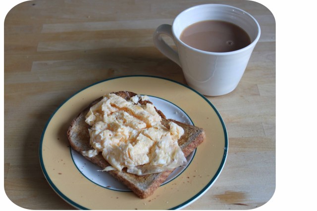 I had a quick breakfast of scrambled egg with a cup of tea.  I went for something substantial in the hope it would help me restrain myself from eating everything the children produced today!