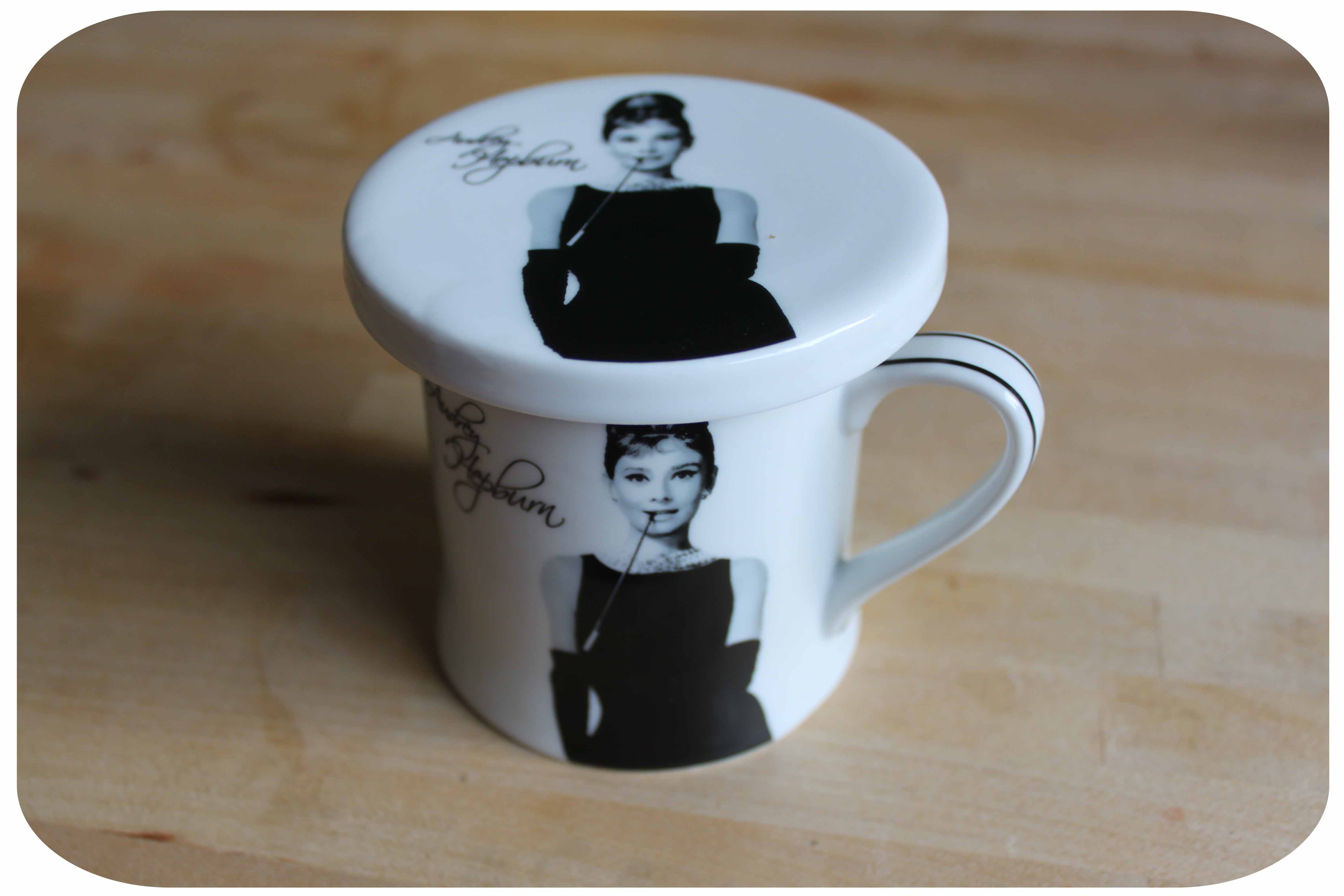 Hubby bought it for me because I am a fan of Audrey Hepburn. I love ‘Breakfast at Tiffany’s’ and enjoyed visiting her home in Switzerland. It is also a very practical cup as the saucer doubles up as a lid, making it east to carry upstairs, as I did today, or to take outside. It prevents insects etc flying in to your tea when you are gardening.