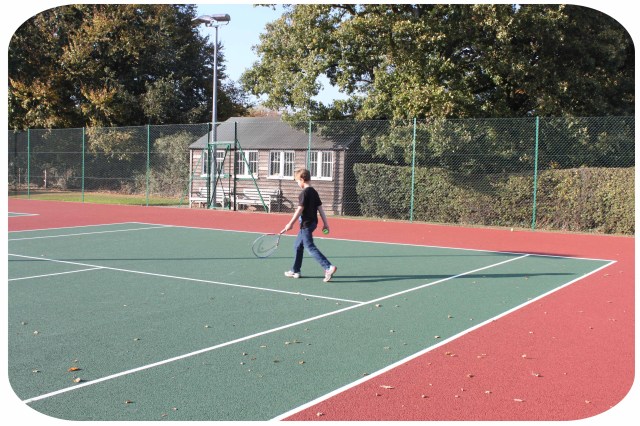 In the afternoon the little fella and I went to our local tennis club which has been closed for ages as the courts were resurfaced. It has been frustrating but the club re-opened this week so I was keen to go and play on them. They look really good and we had a happy hour there, running round and hitting balls.