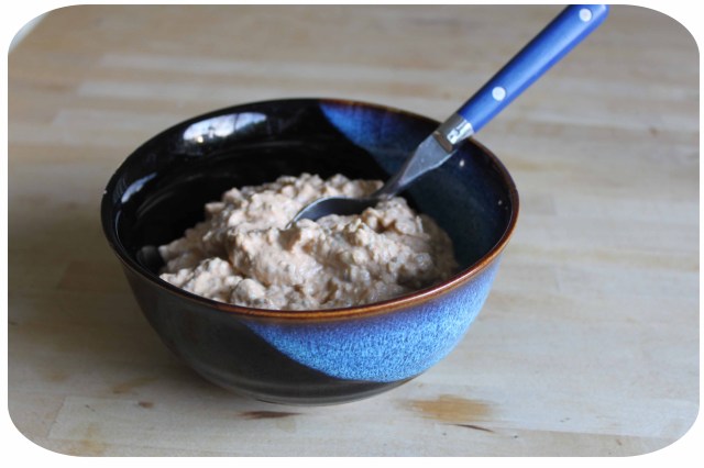The flavour is of mild pumpkin pie, due to the spices. As the oats have soaked all night, they are very soft. This is a great diet breakfast as it keeps me feeling full for hours.