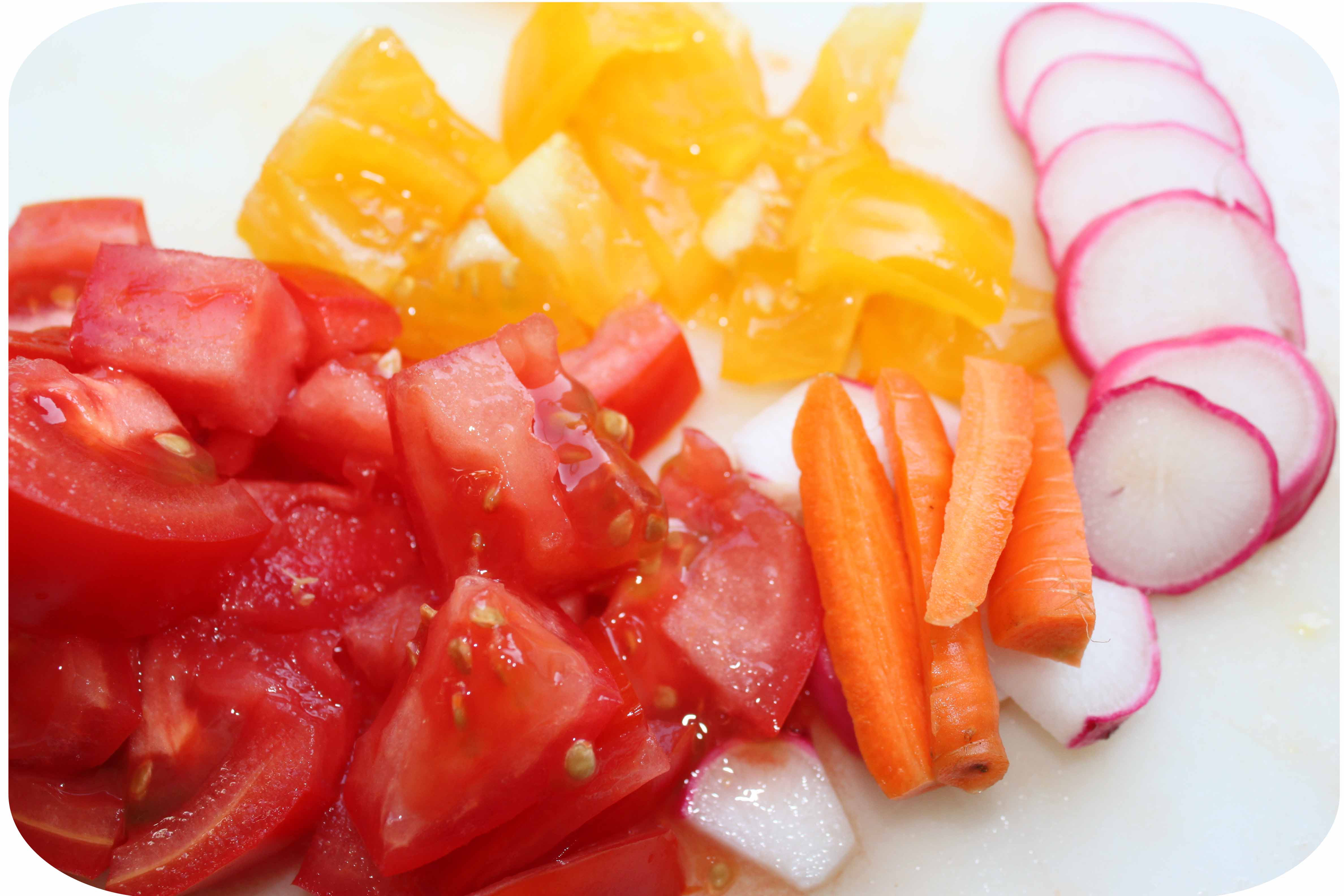 I added a beefsteak tomato and another of Mel’s yellow tomatoes.