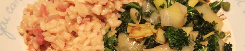 Oh yes, and without the blue cheese either.  After yesterday’s cheesefest I need to keep away from cheese for a bit and there was cheese in my lunch so I really must not add any more, even though it would have been lovely.  So supper tonight was pancetta and blue cheese risotto without the pancetta or blue cheese :-).