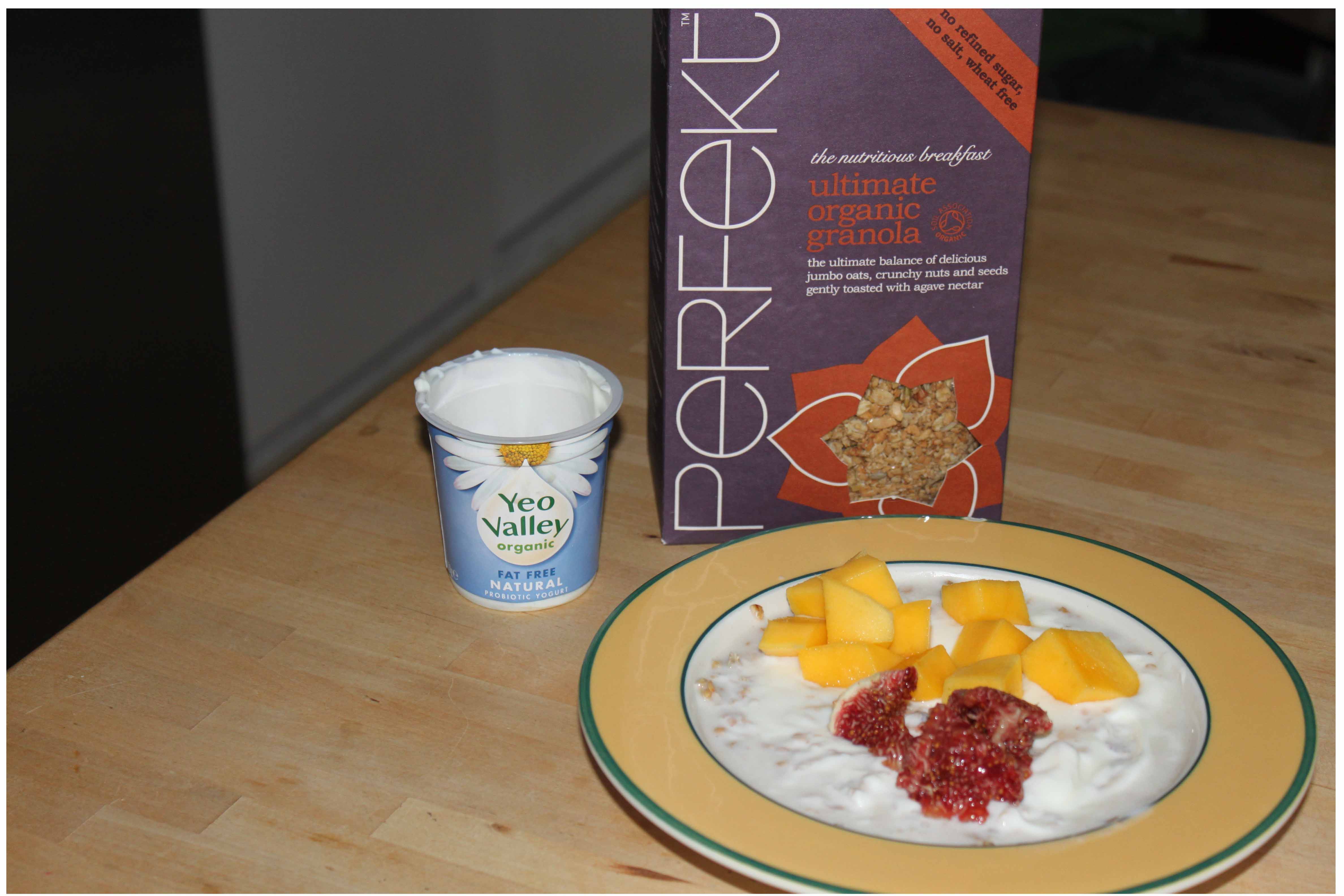 I had a Perfekt start to the day – I bought a new (for me anyway) granola this week and had 40 g for breakfast with a small carton of fat free yogurt, mango and fig.