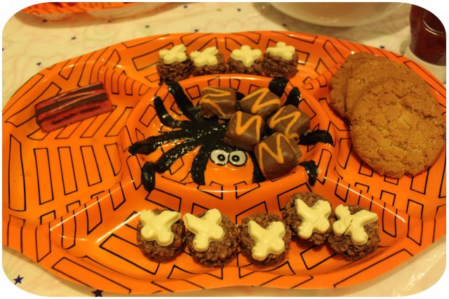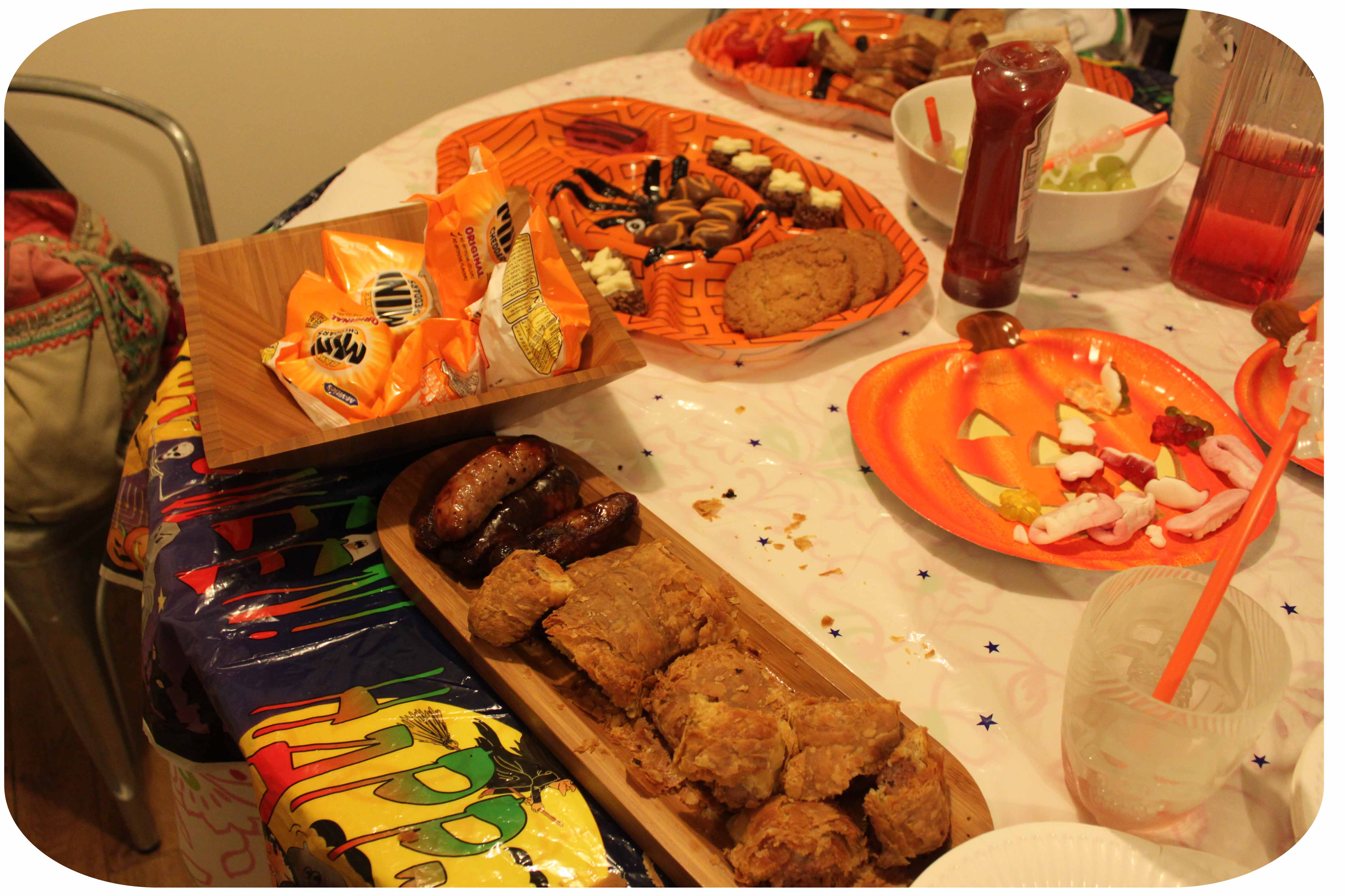 I picked Harvey up from school and took him to Henry’s halloween party. All the kids dressed up, the house was decorated and they went trick or treating round the beautiful village of Smarden. The children stuffed the sweets they had been given and left most of the food. But I was hungry. Sound the alarm bells. Zoe is sitting down at a table full of snacks and is very hungry!