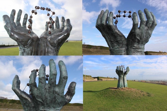 Next point of interest on my walk was the enormous sculpture of copper hands holding a molecule, imaginatively named “Hands and Molecule”. The sculpture was funded by Pfizer, a pharmaceutical research company located nearby at Sandwich, to commemorate the opening of the Viking cycle trail in Thanet in 2000.
