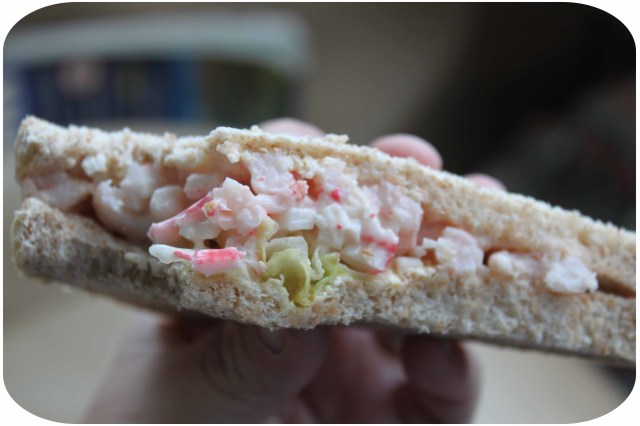 I popped in to a cafe and bought a sandwich to eat in the car on the way home. I thought I had bought prawn in a seafood dressing with lettuce.