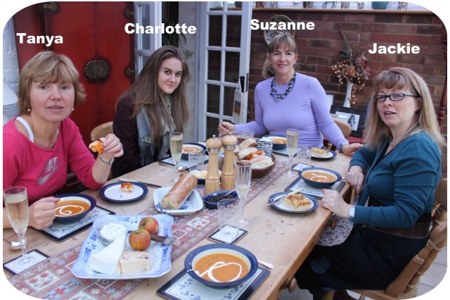 I had a lunch invitation today :-).  I was going to Suzanne’s with Tanya and Jackie and Suzanne’s daughter Charlotte joined us too.  We had a glass of fizz when we arrived and enjoyed looking at the party photos from Saturday.