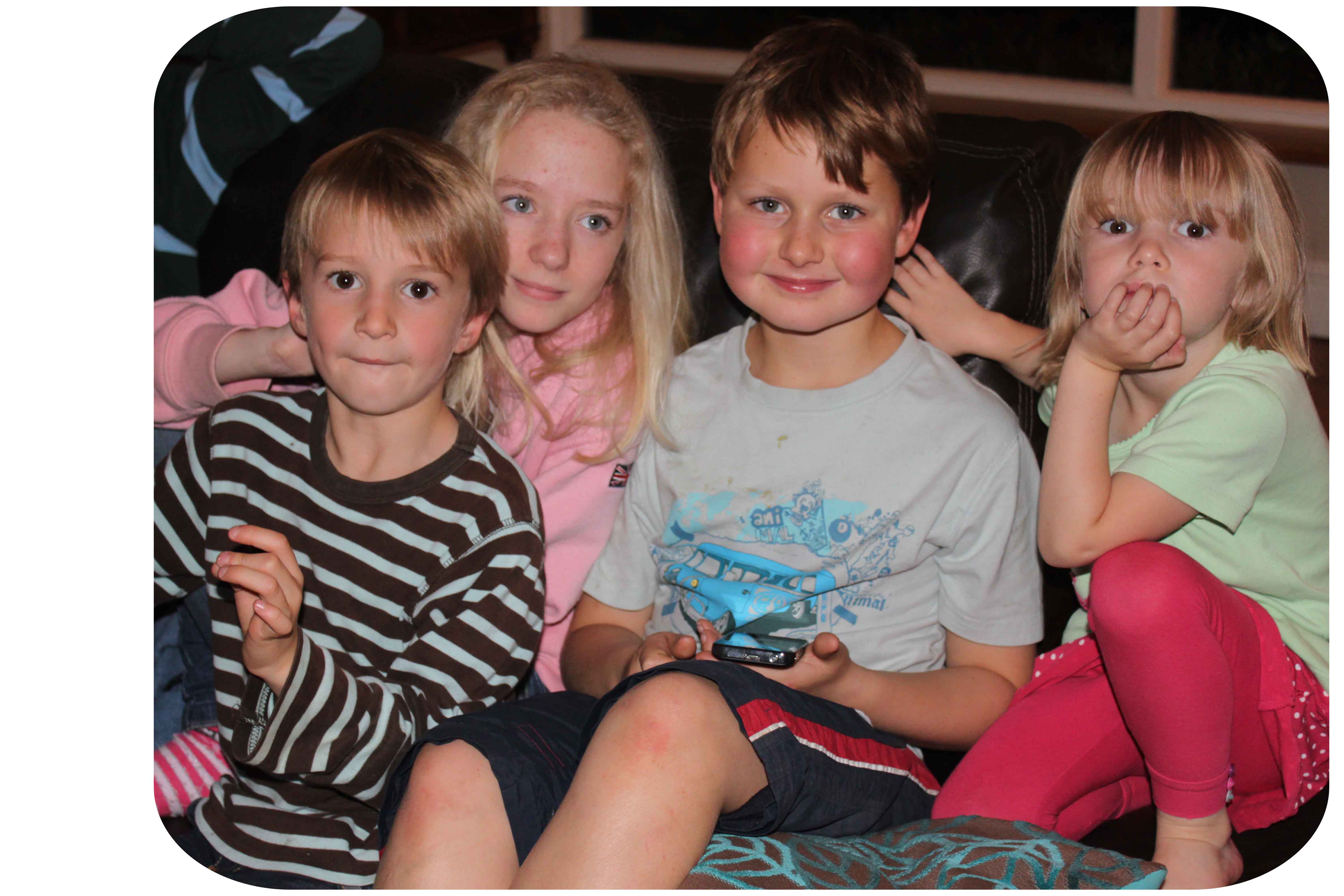 The children sat round my most recently collected Freecycle item; a 1960’s blue formica topped table
