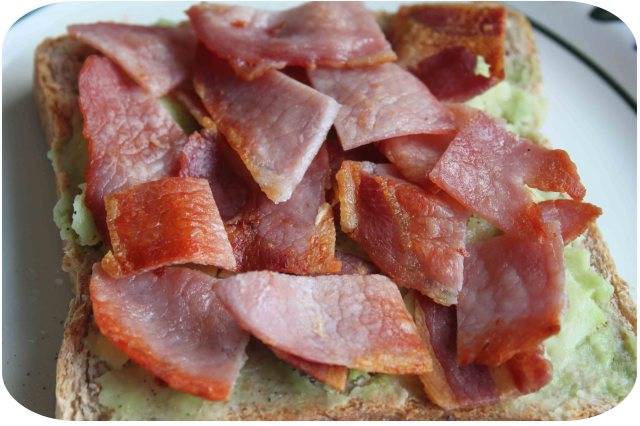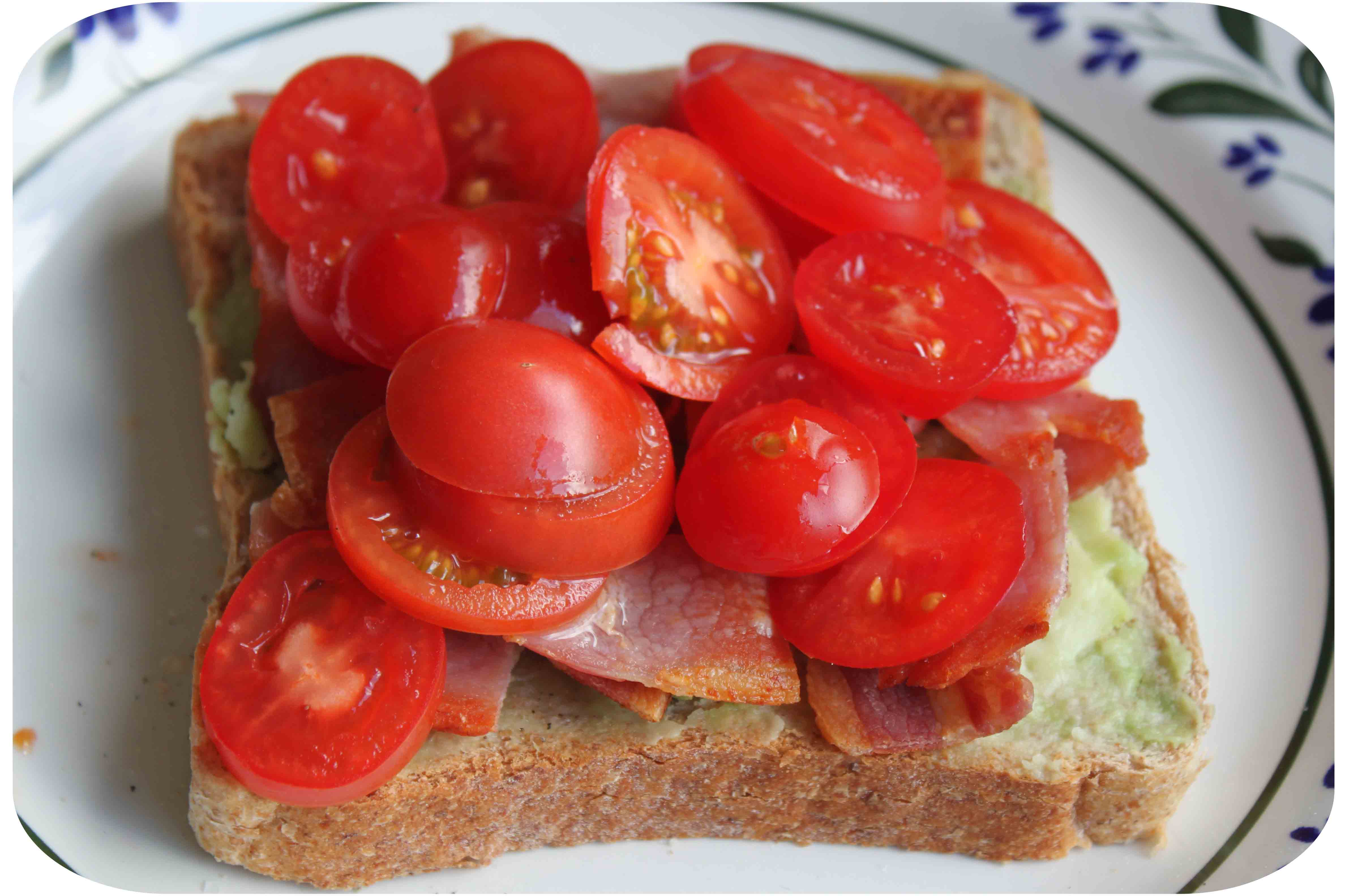 Little bit of mayonnaise, salt and pepper, on lightly toasted bread. Mmmmmmm. Wonderful BAT sandwich.