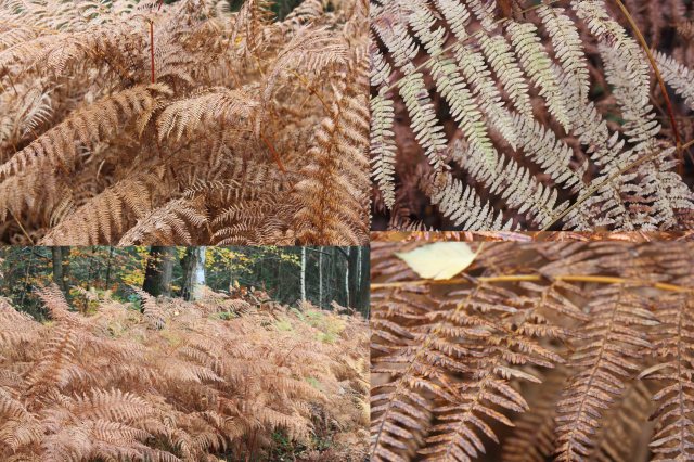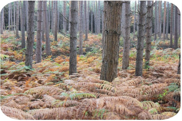 I love the straight vertical tree trunks looming over the undulating and horizontal bracken.