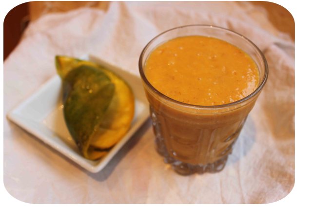 I put all the ingredients in to a blender and blitzed until there were no lumps. It had a sweet and creamy flavour and a lovely thick but smooth consistency. The pumpkin adds extra nutrients and fibre and reduces the overall sweetness of the smoothie which is good as mangoes are very sweet. The above quantity made 3 tumblers of smoothie and I drank them all. Delicious.