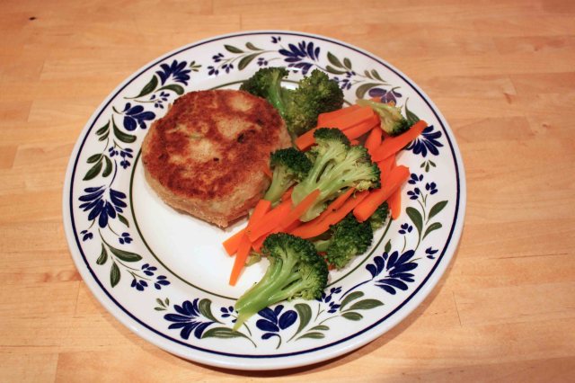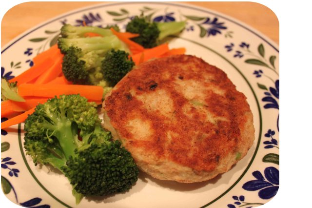 I served it with steamed carrots and broccoli. I did eventually copy Harvey and added some ketchup to the fishcake. Even including the dollop of ketchup and the tsp of butter I added to my vegetables, this dinner was only 11 WW points.