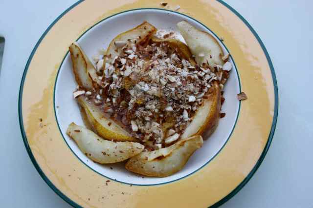 Today I made a pear-fect breakfast. Inspired once again by Kath Eats I had a go at searing some fresh pears. It is very easy and tastes wonderful. Somehow, searing the pears makes them taste more intense. More pearey. It is also lovely to have something warm to eat on such a cold morning.