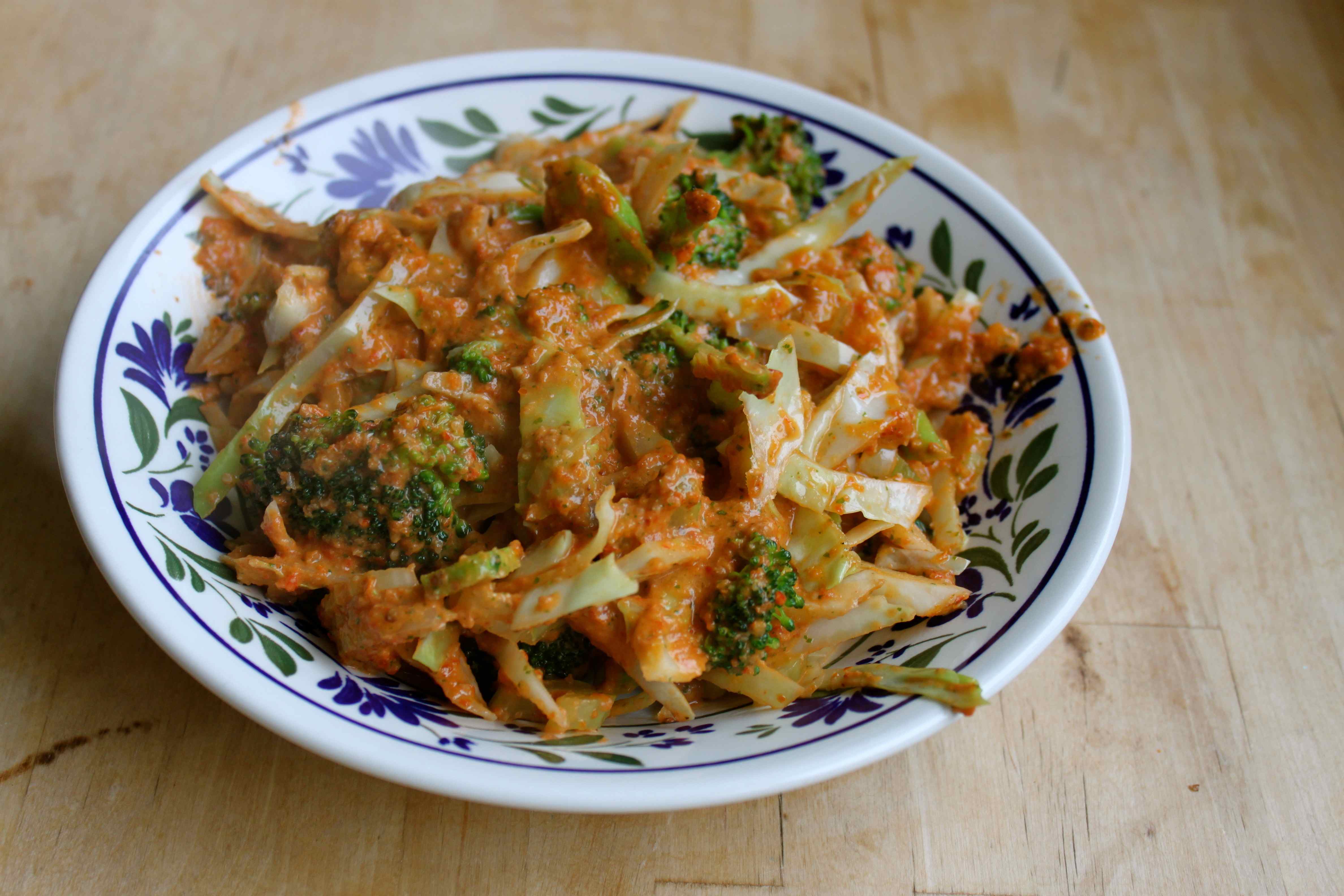I chopped up some celery, broccoli and white cabbage. My initial thought was to dip the raw vegetables in to the pesto, use it like a dip.