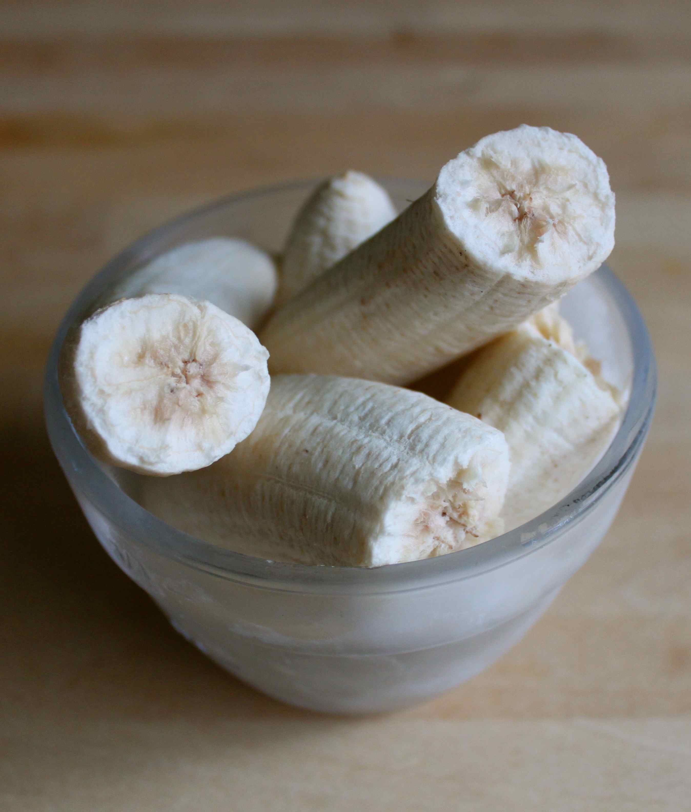 Last night I also popped 3 small peeled bananas in the freezer.