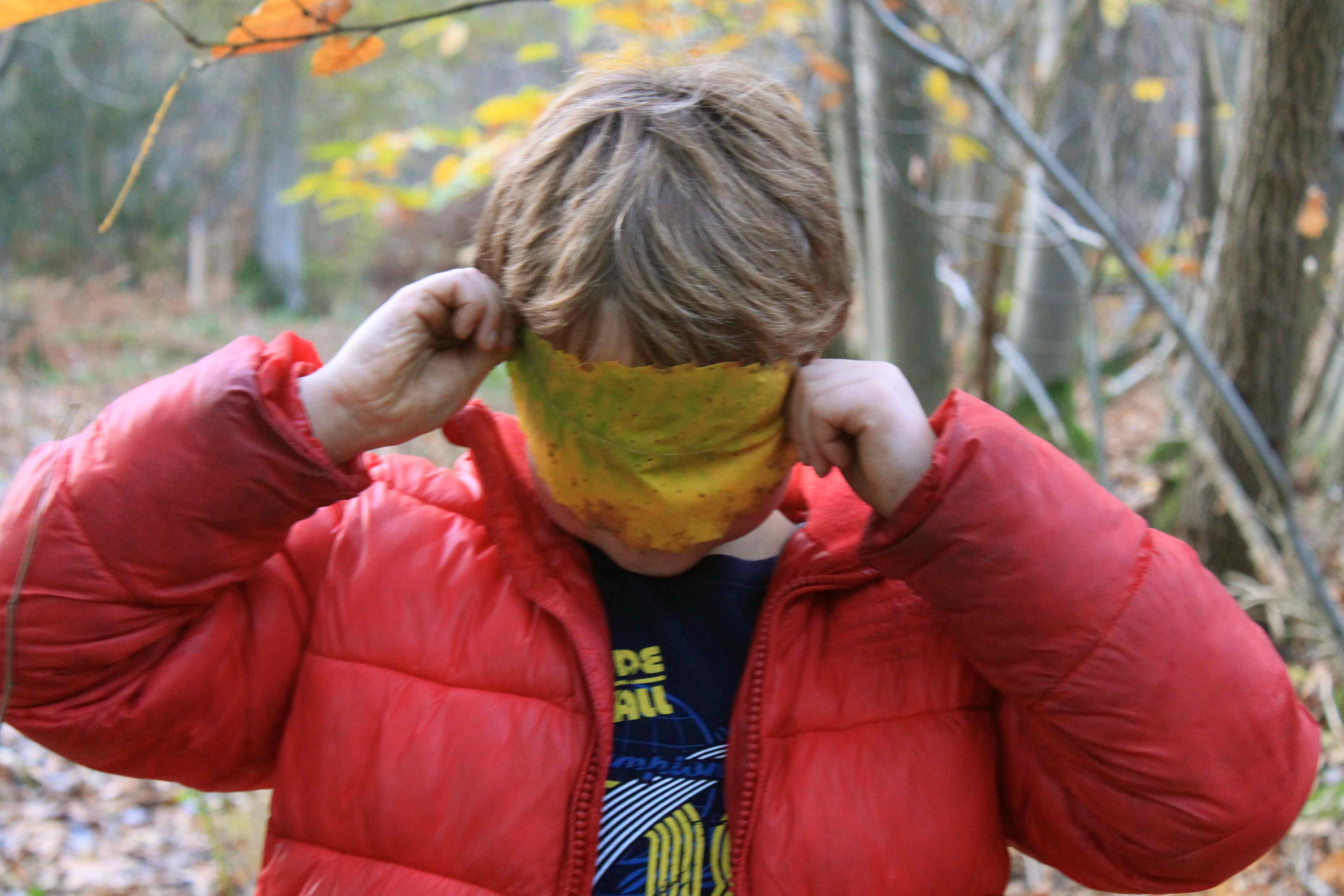 It was busy over there today. We bumped in to Marion walking her dogs with a friend, twice, and a boy walking with his family who Harvey used to go to school with. We also came across some curious leaf-faced folk. You never know who you may see in the woods!