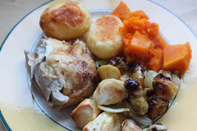 I also cooked a butternut squash. I peeled it, scraped out the seeds, cut it in to chunks and steamed it for 10 – 15 minutes until it was soft. It mashes so easily you don’t need to add butter so it is a healthy addition to the plate and a very tasty one. It goes beautifully with chicken.