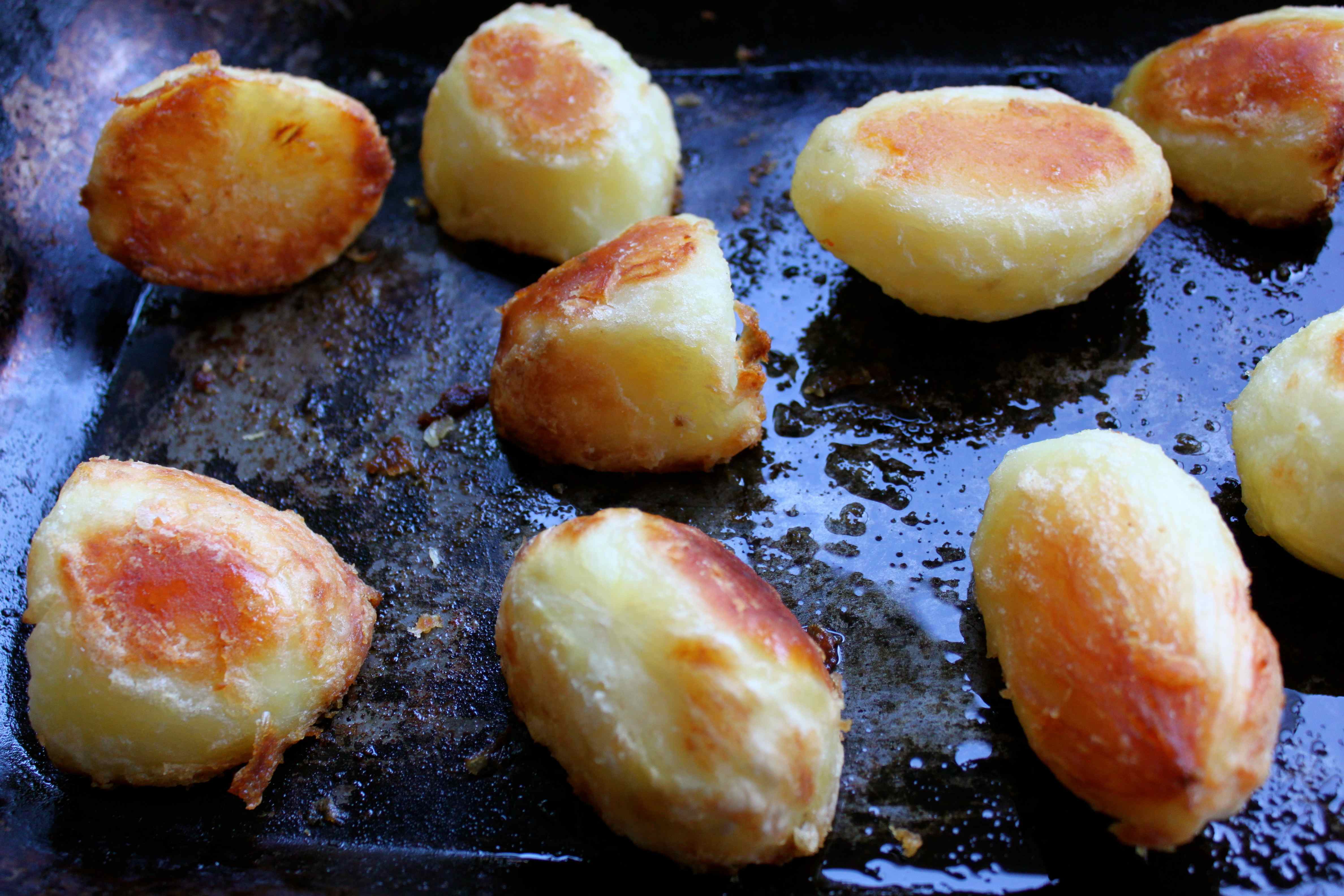 Not diet food but I was making these for the family and then succumbed and had 2 as they were so delicious. I peel the potatoes and parboil them for 10 minutes. I drain them, pop them back in the pan and then shake the pan to fluff up the potato on the outside. I add about 2 tbsp of groundnut oil to a roasting tray which I put in the oven to warm before adding the potatoes. When the oil is warm, I add the potatoes and turn them so they are lightly coated in oil. I put them back in the oven and cook them on 190 ° C for about 1 hour. If you have used a good type of potato for roasting (I like Maris Piper), your potatoes will be crispy on the outside and soft inside. You can see from the picture I have hardly used any oil so they are not disastrous for a diet treat.