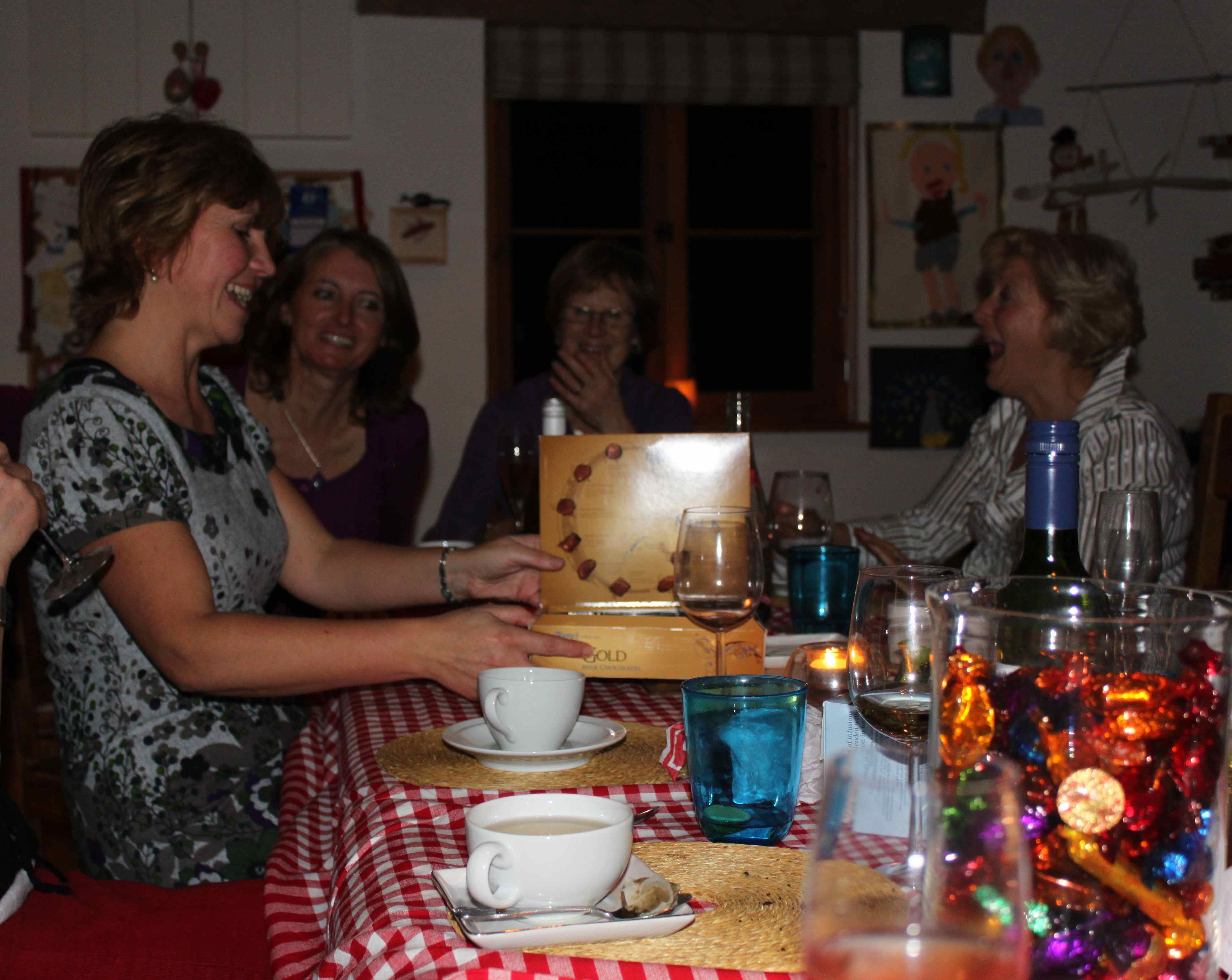 Tonight we had the Ladies Drills (tennis group) pot luck supper, which Michelle had kindly agreed to host. We all took a different dish and the quality of the food was wonderful. We started with drinks (naturelment!)