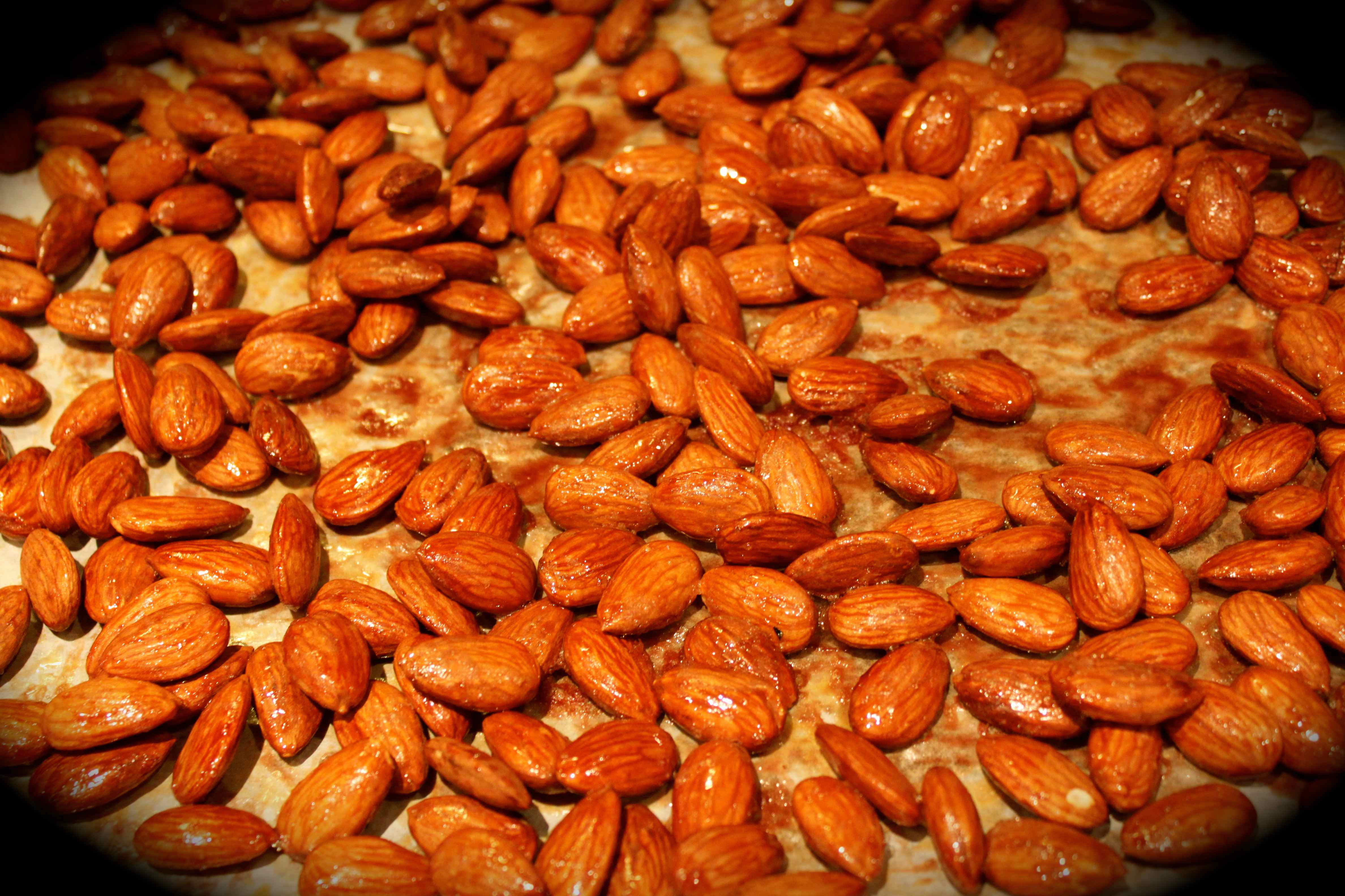 - Put the almonds on the paper and pour the maple syrup on the almonds.