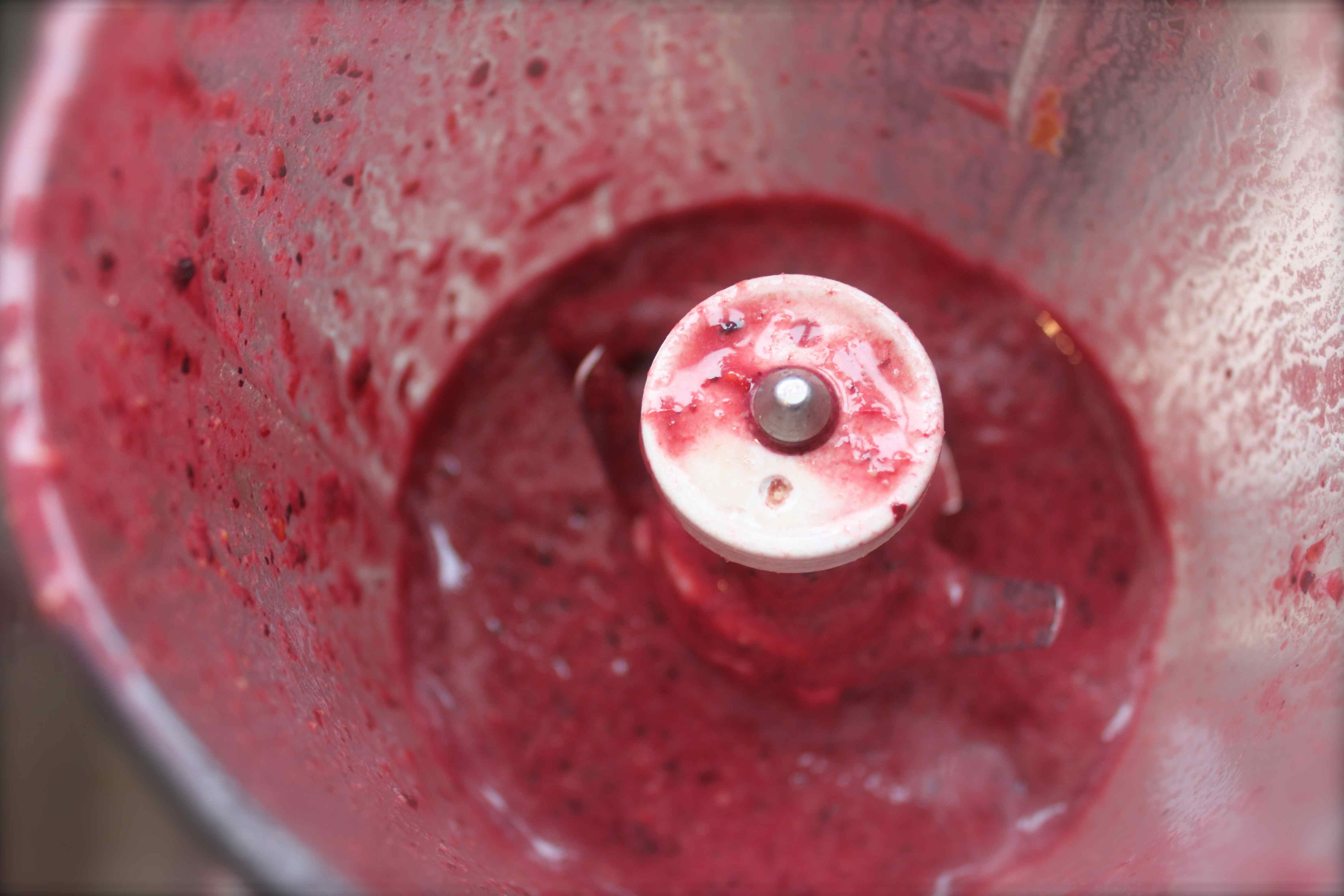 - While the nuts are being buttered in the processor, chop the mixed berries in to pieces as small as you want.
