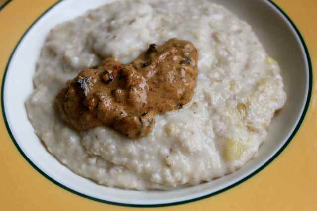 So it was lovely to wake up feeling human and energetic. I made my current favourite breakfast which is porridge (just 1/3 cup) made up with water and coconut milk and a banana which I chop up and add while I am cooking the porridge.