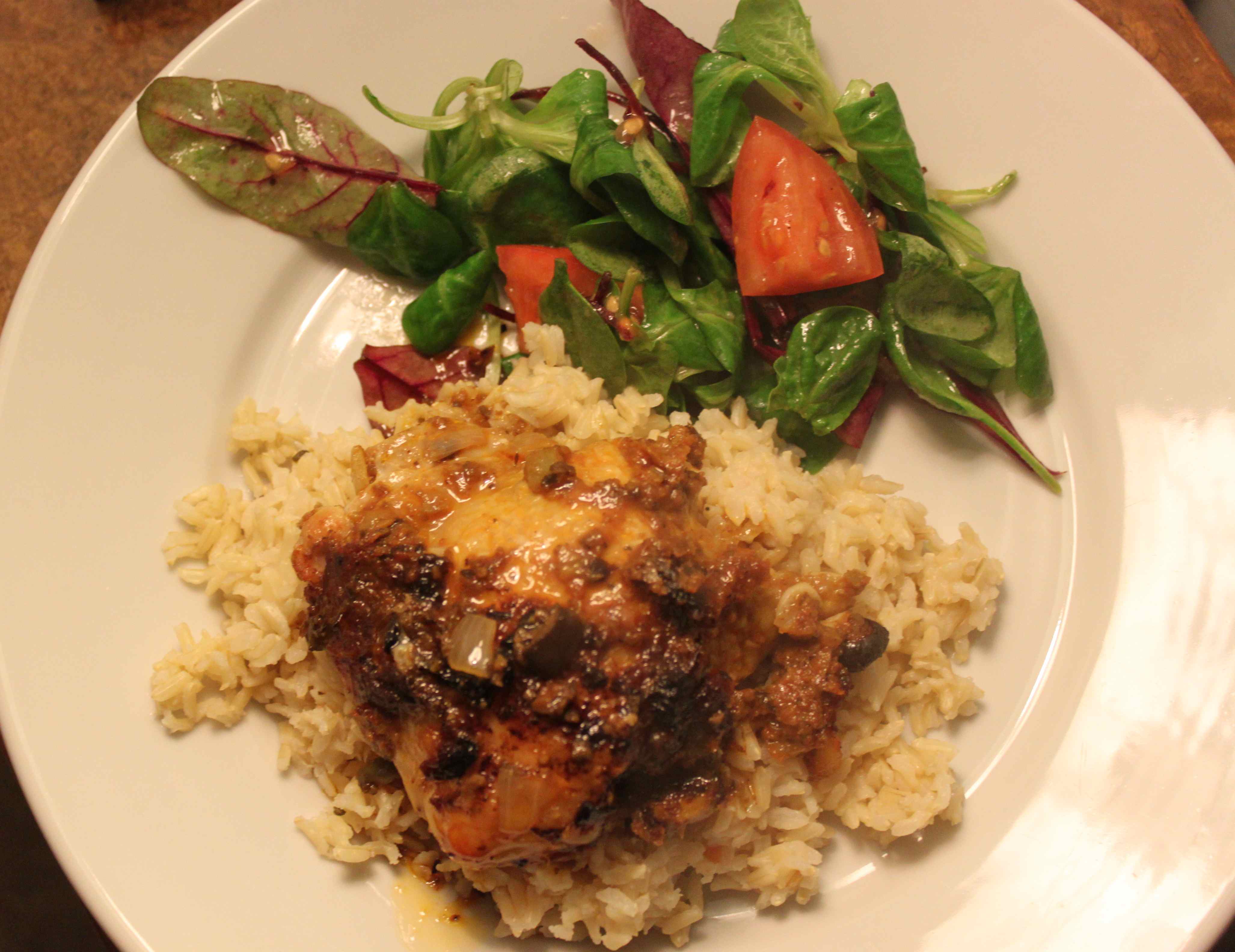 Our main course was chicken cooked with olives, tomatoes and prunes. The recipe needs adjusting and when I have perfected it I will share it. I served it with brown basmati rice and a green salad with marmande tomatoes which I tossed in a vinaigrette dressing.