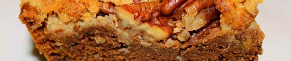 - 2. For brownie layer: mix together the pumpkin, sugar, coconut oil and vanilla until blended well. Sift in the flour, cornflour, cocoa powder, salt and baking powder and mix until incorporated. Take the entire mixture and place in pie pan. Wet spatula and spread around evenly so it is smooth.