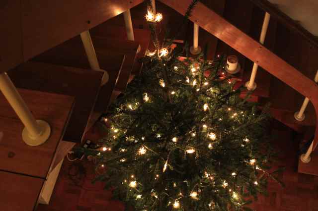 I like the simplicity of it, and when all around is dark, the white lights and mild pine scent are pretty and delightful to me. I need nothing else. But I can guarantee that by tomorrow the tree will be groaning under the weight of 20 years of accumulated ornaments. And I will enjoy those too, as nearly every one tells a tale.