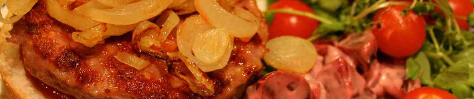 I served mine with ketchup and onion on a white bap (no wholemeal in the supermarket today) with pea shoots, cress, cherry tomatoes and beetroot in mayonnaise.